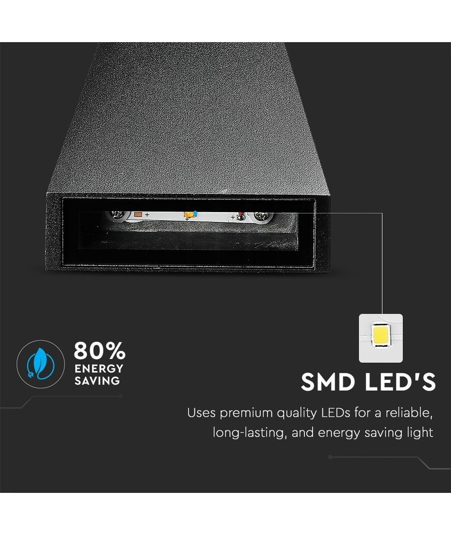 Hvis du leder efter en pålidelig og effektiv udendørs væglampe, er denne model fra V-Tac en fremragende løsning. Med en effekt på 6W, der erstatter en traditionel 50W lyskilde, får du både energibesparelse og fremragende lyseffektivitet.