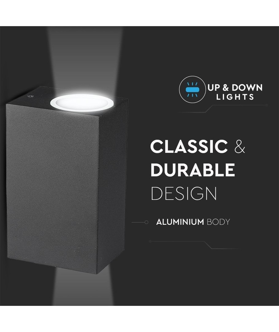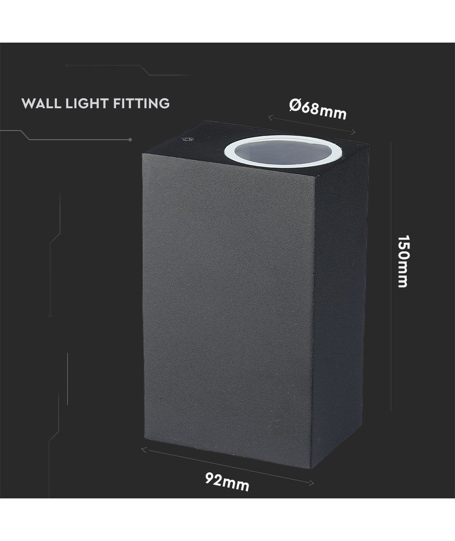 Lampens dimensioner er 92 x 150 x 68 mm, en kompakt størrelse der betyder, at den passer perfekt til de fleste vægge uden at være overvældende. Den diskrete størrelse gør det let at installere flere lamper i træk for en dramatisk effekt.