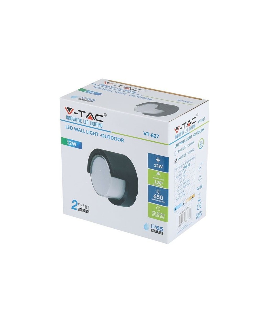 Den V-Tac 12W LED sort væglampe giver en enkel og effektiv løsning til din udendørs belysning, samtidig med at den tilføjer et strejf af stil og funktionalitet til dit hjem.
