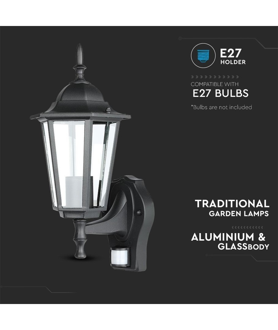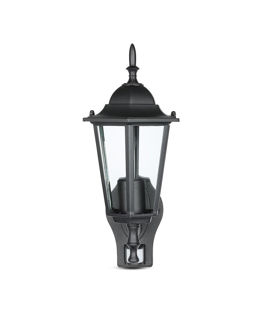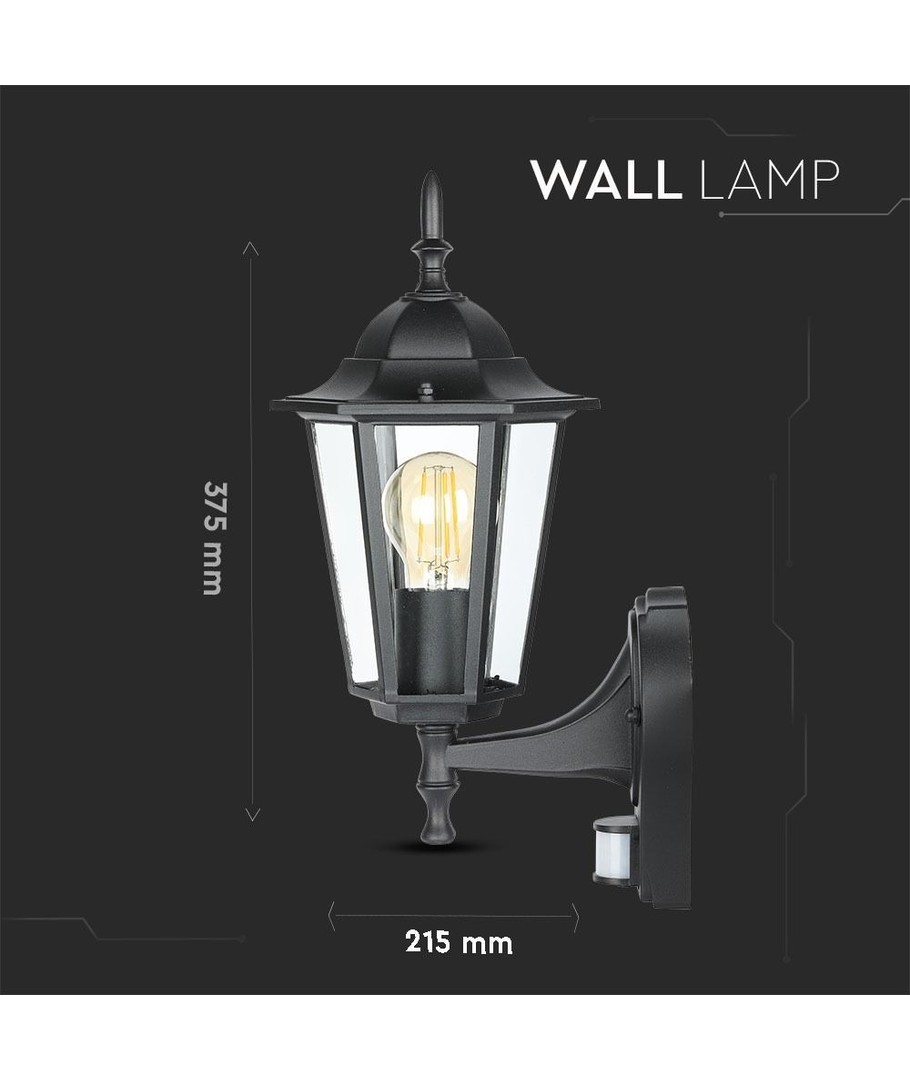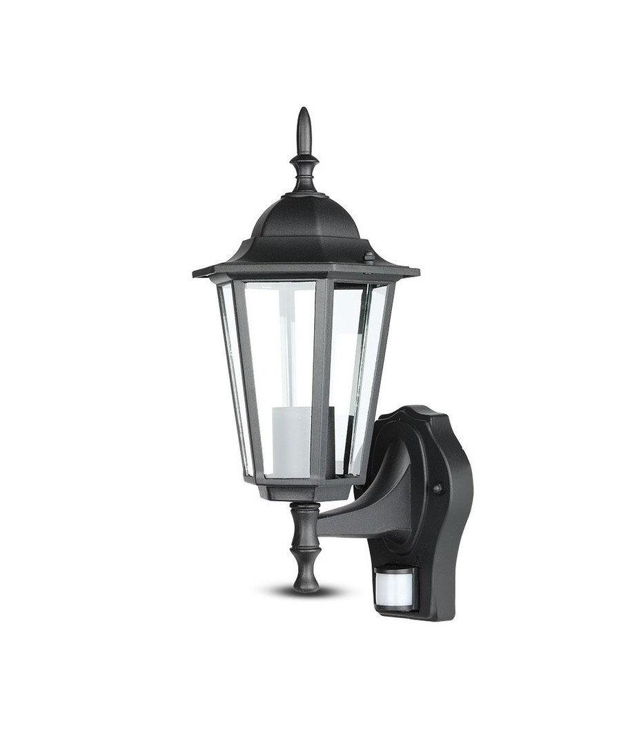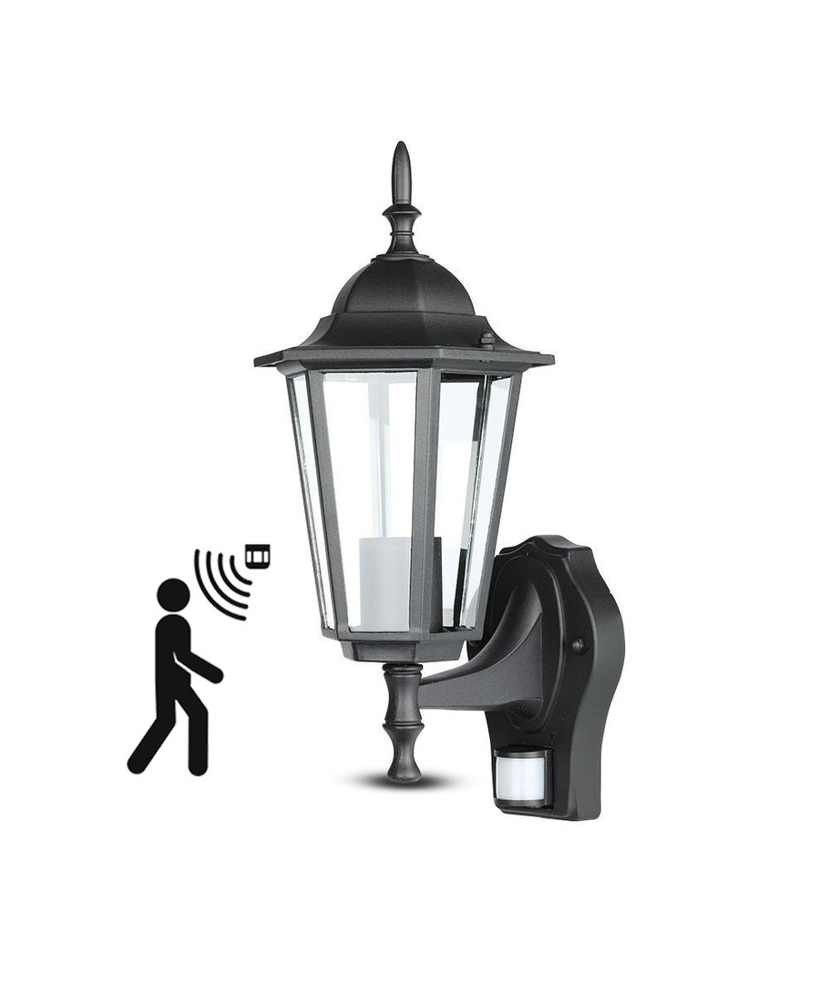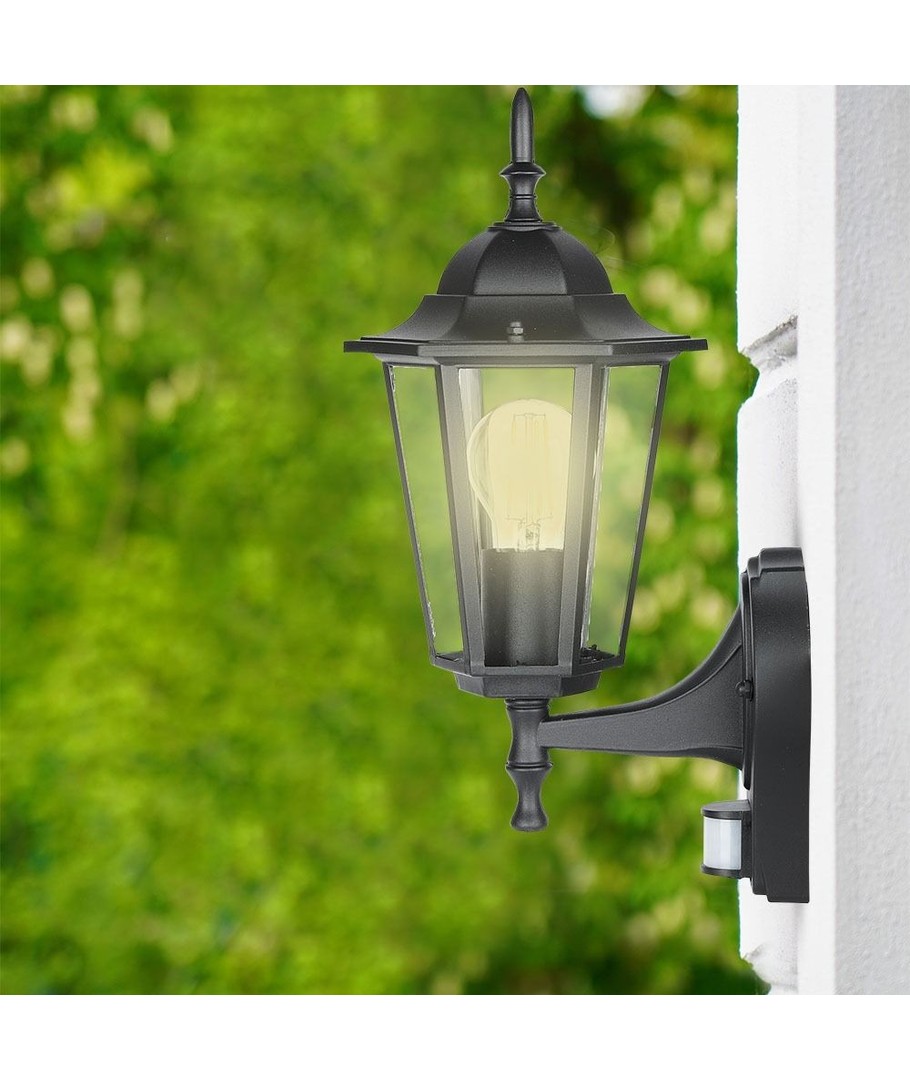 Klassisk sort væglampe med indbygget sensor.