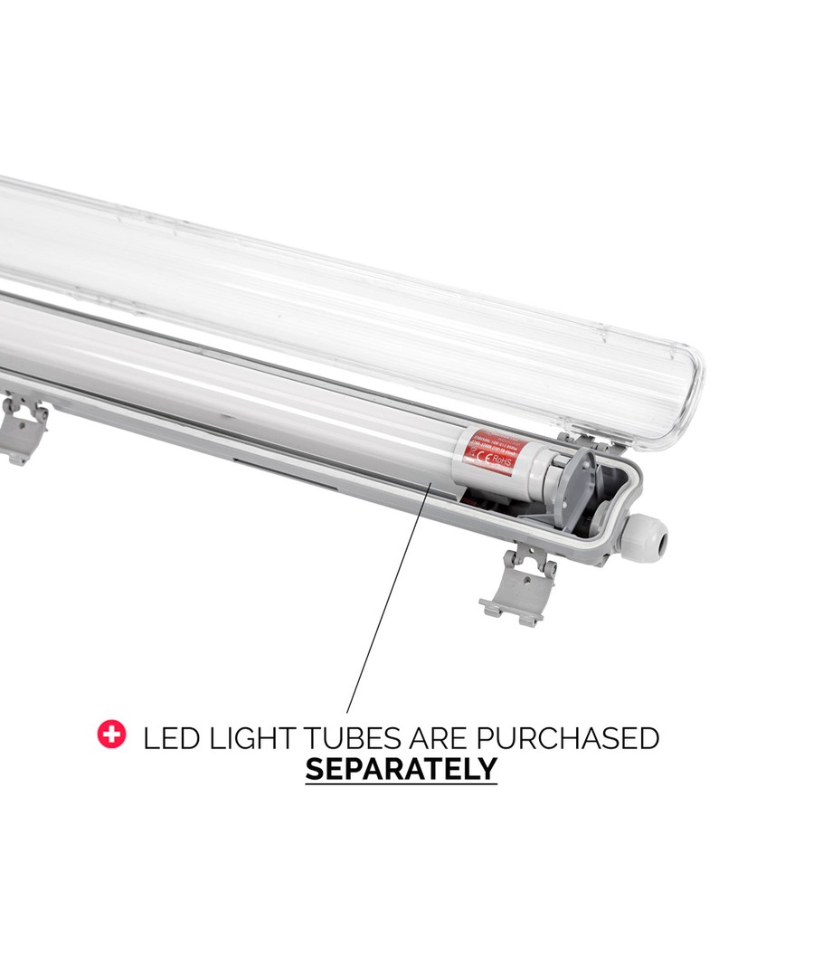 Vandtæt armatur klar til 1 x 60 cm LED rør.
