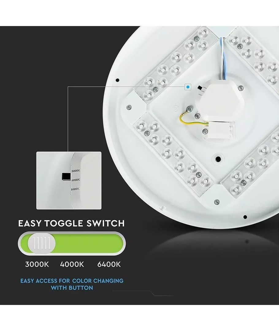 Med V-Tac rund 24W LED loftslampe får du ikke kun effektiv belysning, men også et elegant tilføjelse til din indretning. Det tidløse design passer ind i ethvert moderne hjem, og de justerbare lysfarver giver dig friheden til at skabe den perfekte stemning. Skab en varm atmosfære i dit hjem med denne pålidelige og stilfulde lampe.