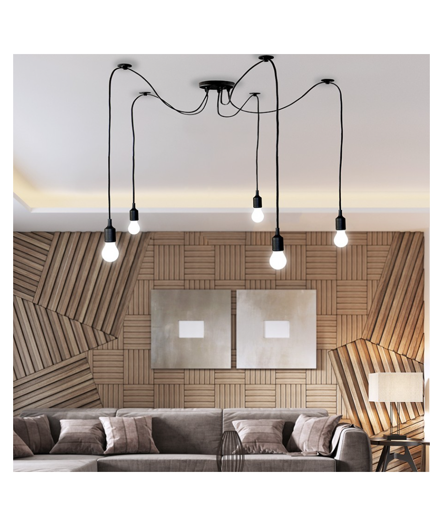 Edderkoppe loftlampen er udstyret med en praktisk E27 fatning, hvilket giver dig mulighed for at vælge mellem en bred vifte af lyskilder for at skabe det perfekte lys til dit rum. Lampen leveres med en smuk 1,5 meter ledning i en matchende farve, der giver dig mulighed for at placere lampen hvor som helst i rummet og stadig have en stilfuld og sammenhængende look.