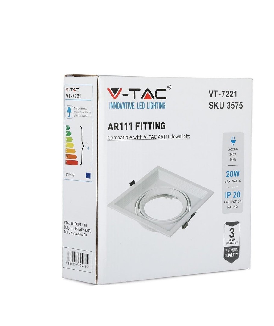 V-Tac hvid indbygningsspot til 1 stk. G53 AR111 pære.