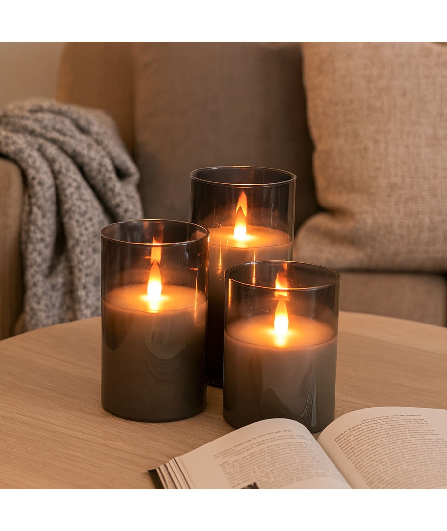 Oplev den hyggelige atmosfære med vores LED Bloklys sæt i røgfarvet glas, der bringer elegance og tryghed ind i dit hjem.
