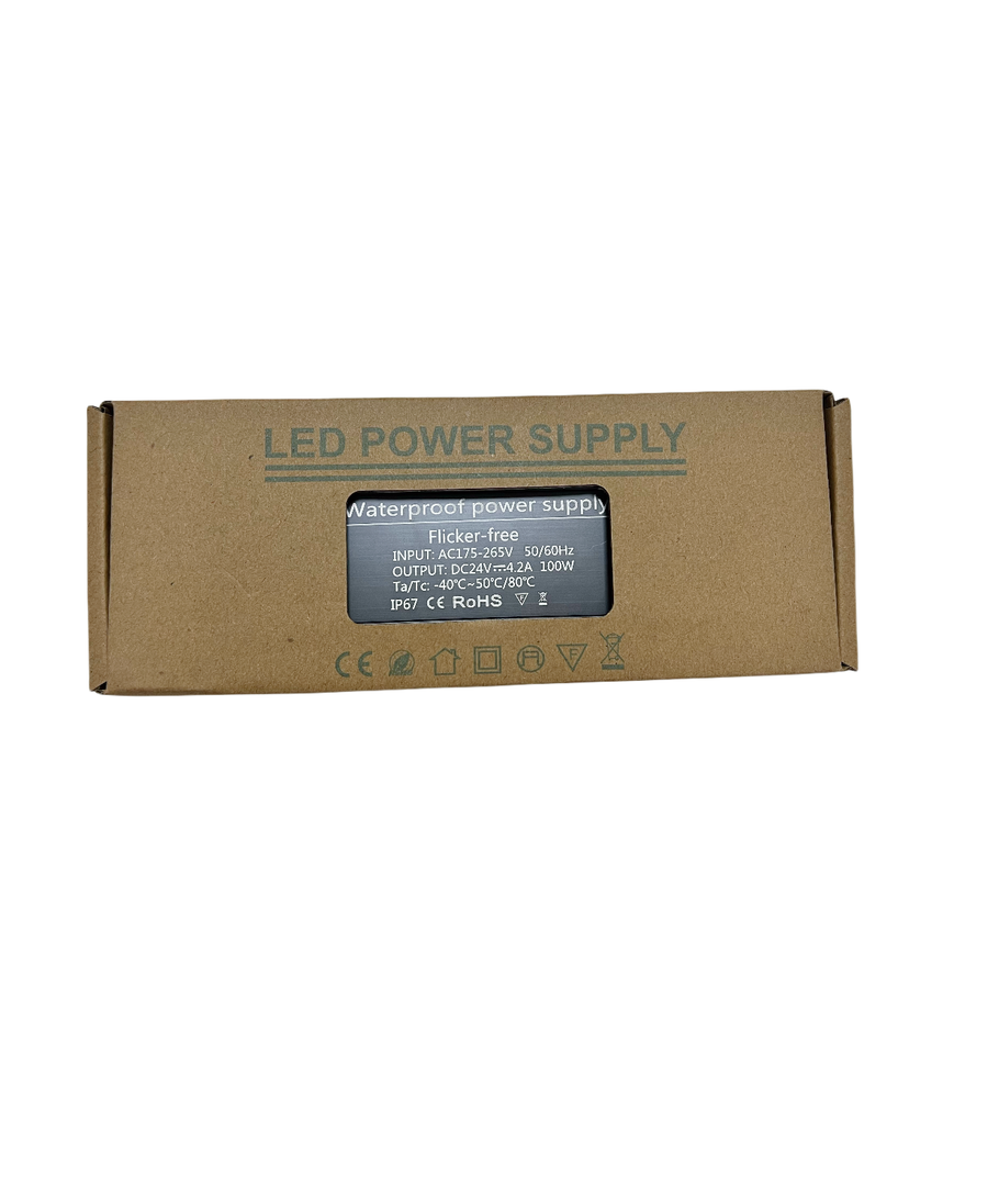 Den nye 100W strømforsyning 24V DC - 4,1A leverer pålidelig strøm uden flicker og er perfekt til både indendørs og udendørs anvendelse takket være dens IP67-certificering.