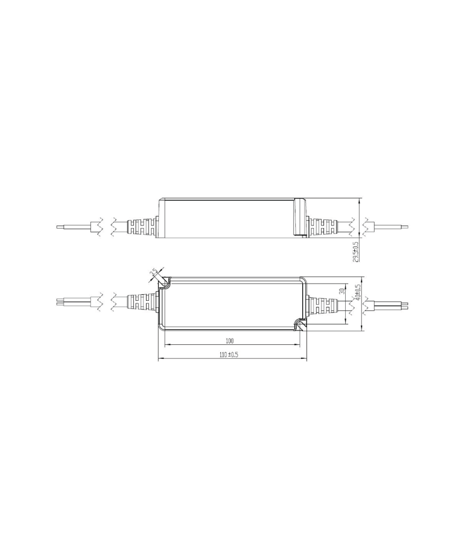 Strømforsyningen er yderst kompakt med dimensioner på 40 x 29,5 x 110 mm, hvilket gør den nem at integrere i selv trange installationsområder. Dens praktiske størrelse og højeffektive strømudgang på 2,91A gør den til en ideel løsning til både private og kommercielle applikationer, hvor pladsen er begrænset.
