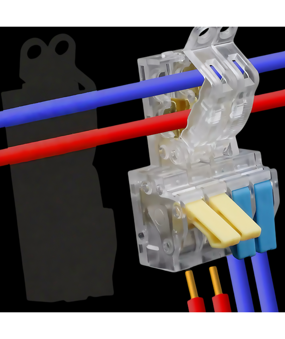 De har et praktisk tilslutningssystem, med orange vippepal, som gør det nemt at få de bløde ledere ind i hullerne.