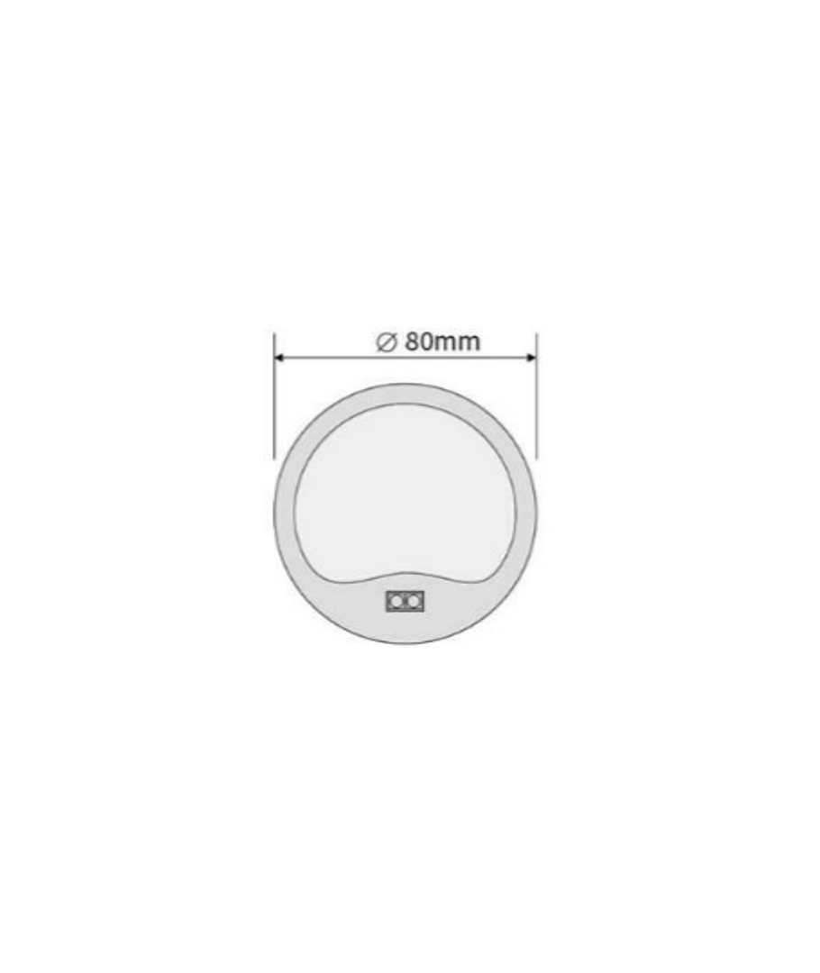 12V DC, Hul: Ø5,5 cm, Mål: Ø6,8 cm, børstet stål