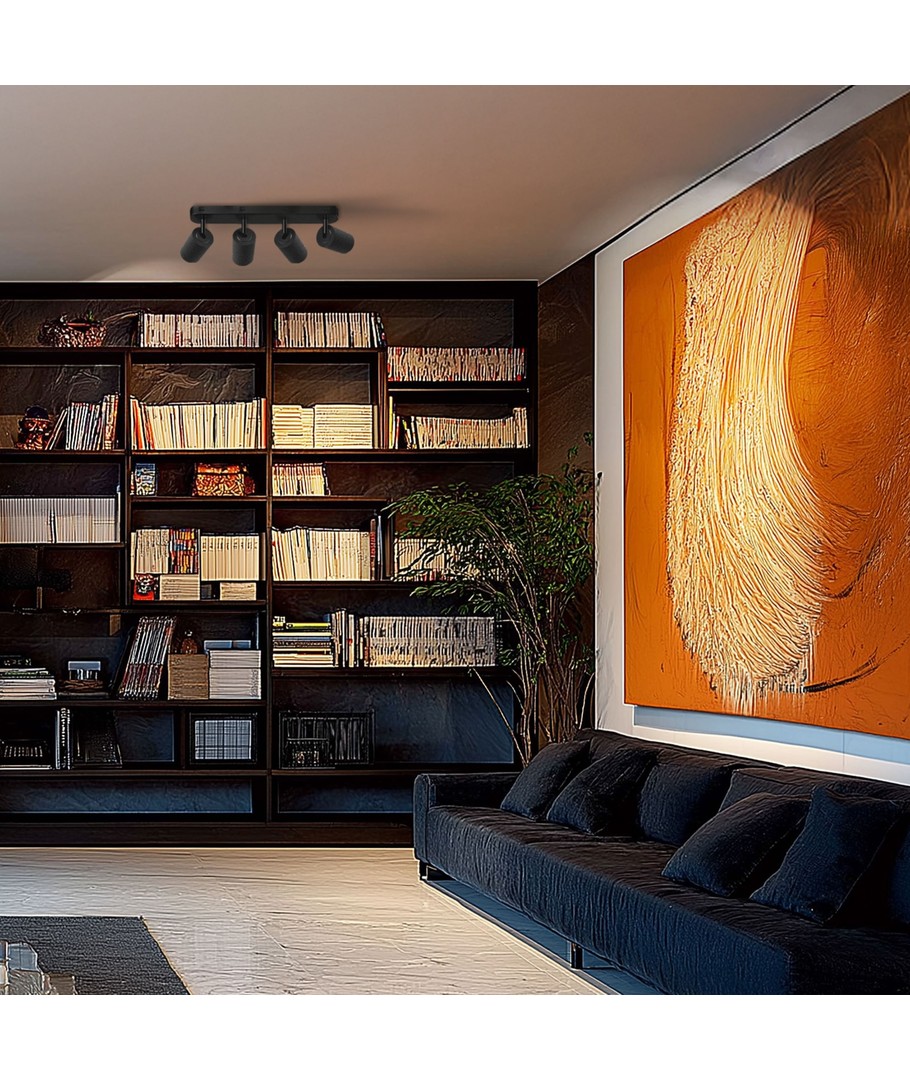 • Justerbare spots: Fire justerbare spots, der gør det nemt at dirigere lyset præcis der, hvor det er mest nødvendigt.