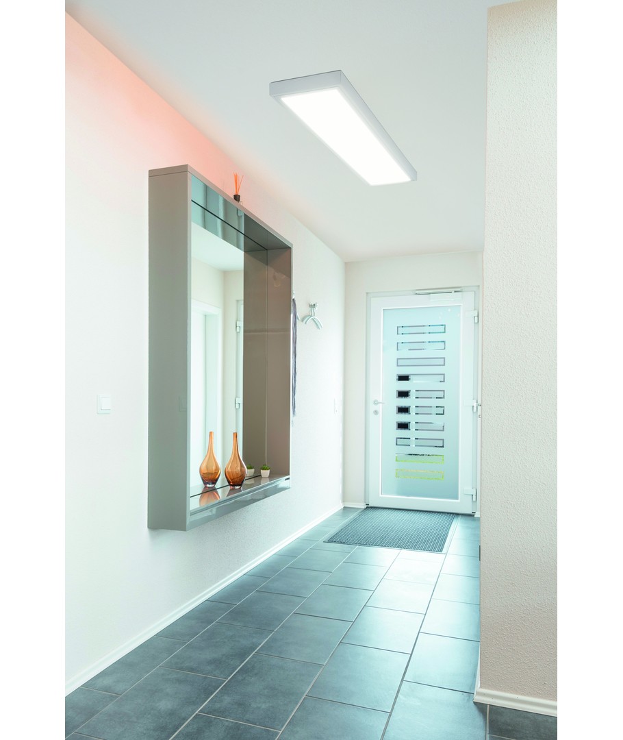 Aflang loftlampe med stilrent design, stærkt lys og spændende indstillinger som styres med fjernbetjening.