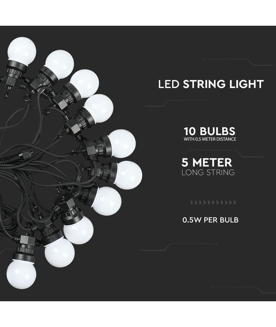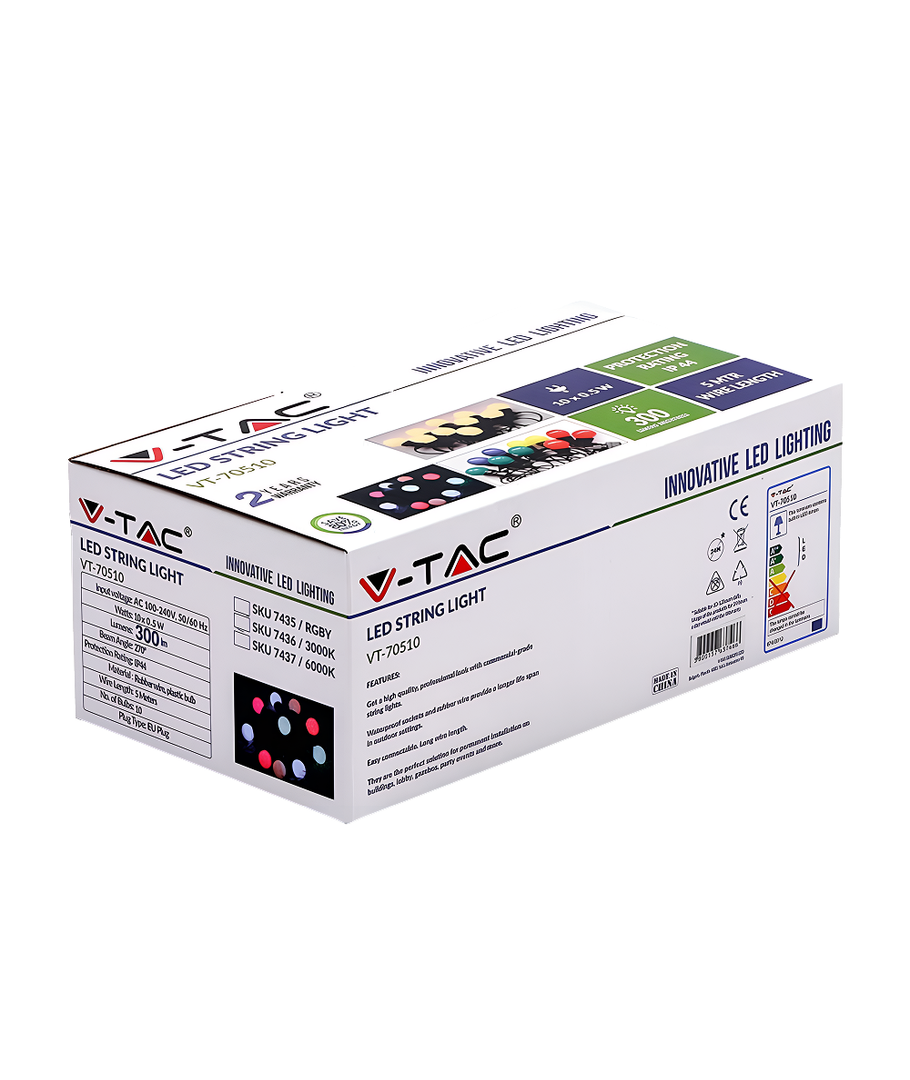 Skab den rette atmosfære til enhver lejlighed med vores V-Tac LED lyskæde. Denne lyskæde er designet til at kombinere funktionalitet med æstetik og er ideel til både indendørs og udendørs brug.