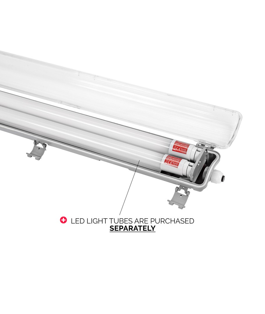 Vandtæt armatur klar til 2 x 120 cm LED rør.