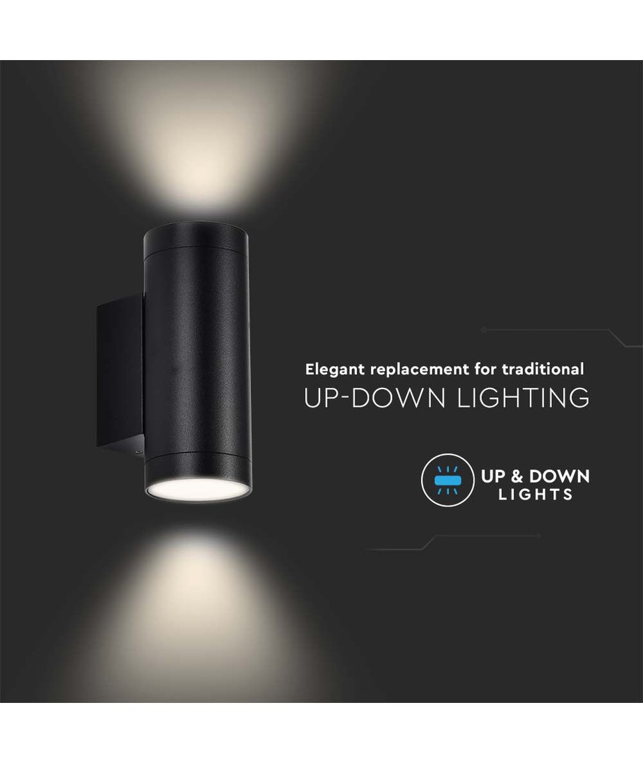 Giv din bolig et markant arkitektonisk løft med denne stilrene Up/Down væglampe i sort aluminium. Lampen er skabt til at fremhæve husets linjer ved at kaste et fokuseret lys både opad og nedad, hvilket skaber en flot dynamik på facaden og gør uderummet mere indbydende.
