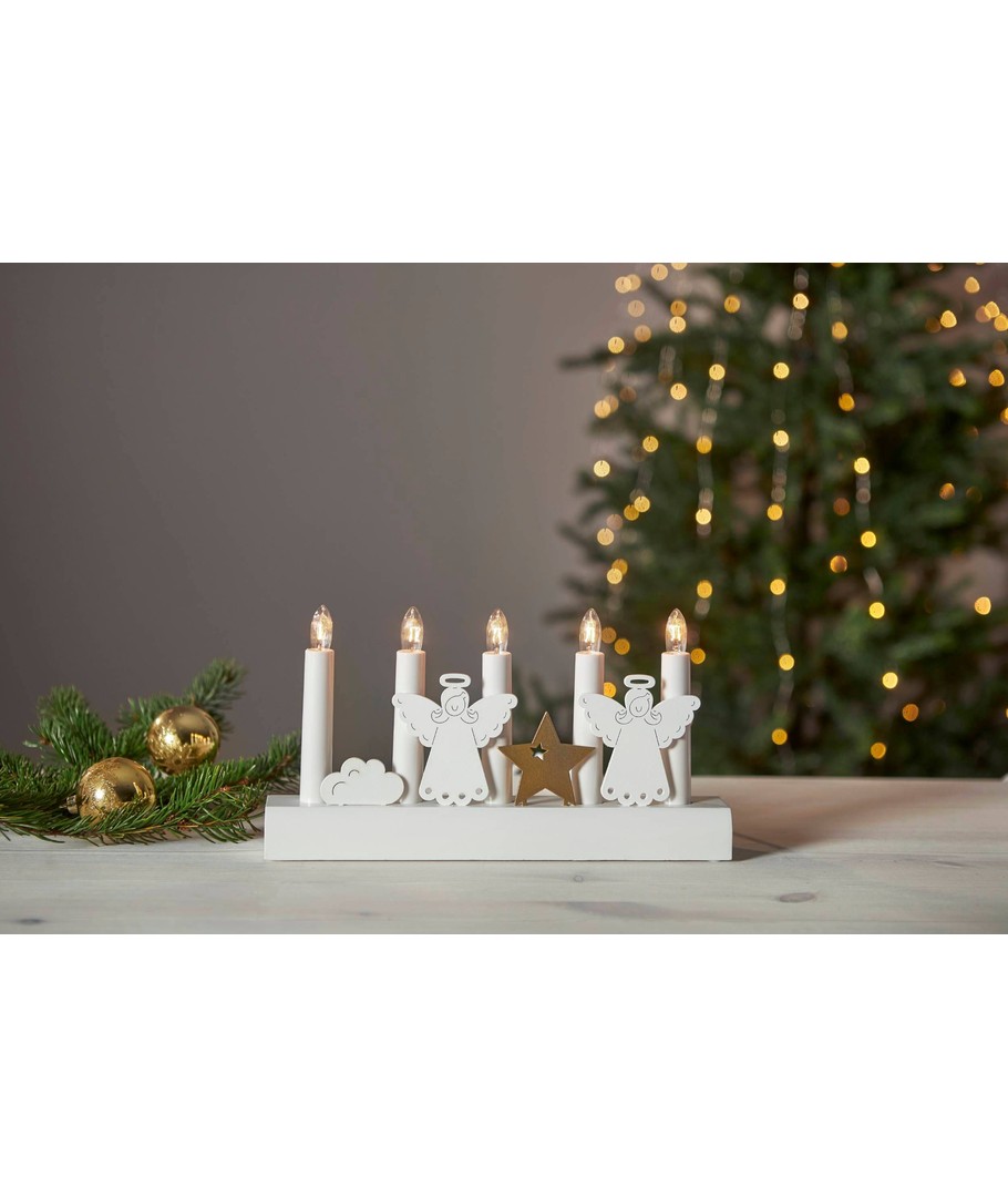 EGLO JULIA Julelysestage i hvid med engle og med 5 hvide kertelys i varm hvid.