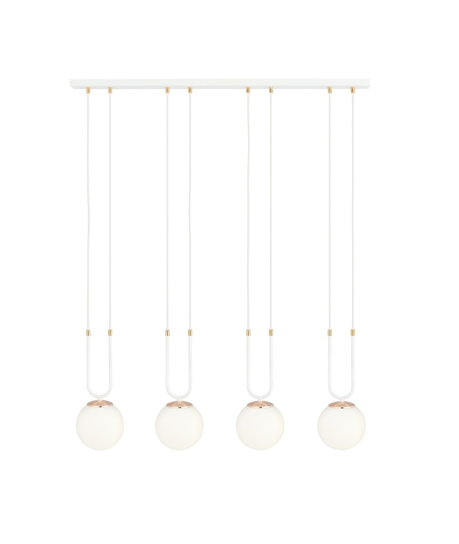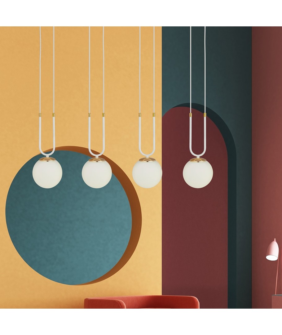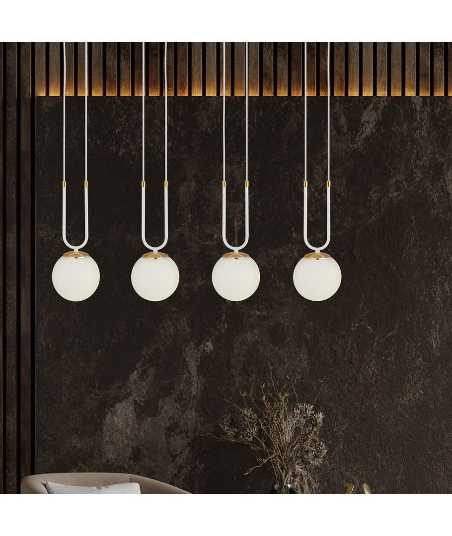 Få en uovertruffen kombination af æstetik og funktionalitet med Glam 4 Hvid/Opal pendellampe, som med sit minimalistiske design hurtigt bliver et centralt element i dit hjem.