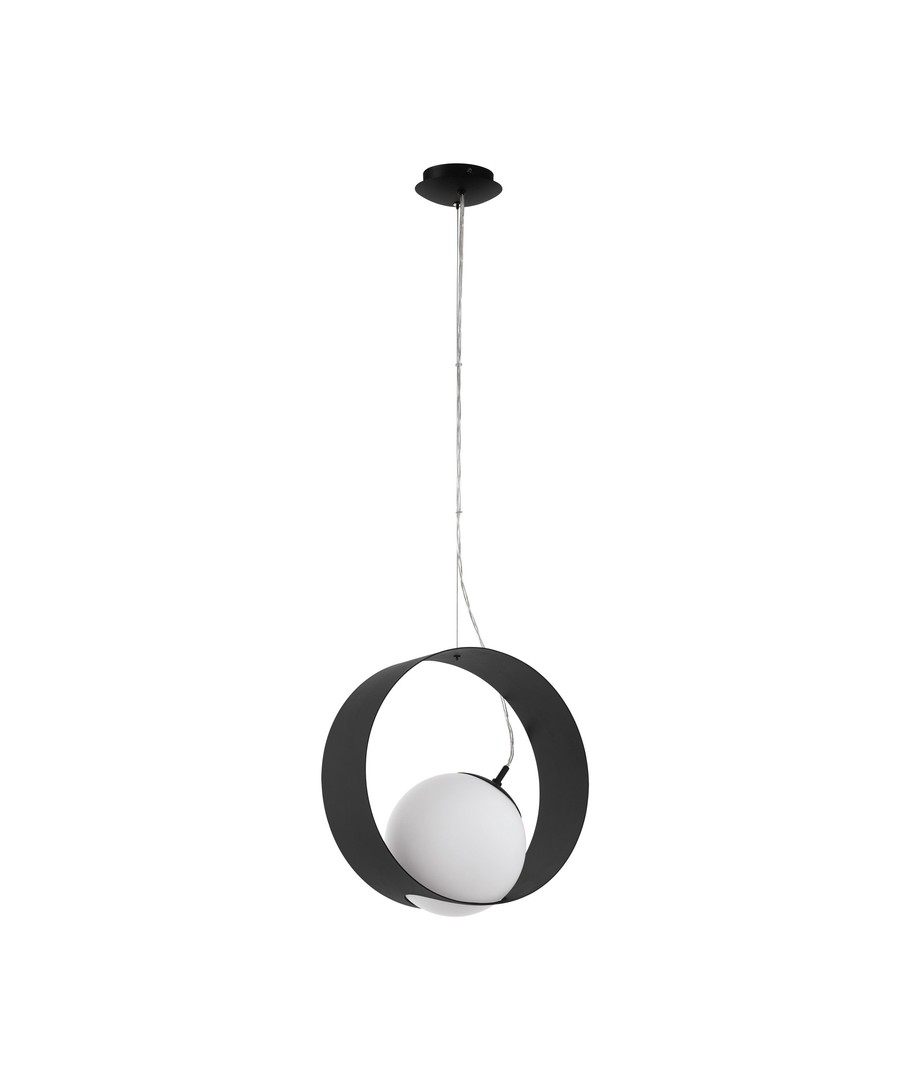 Smuk pendel lampe i nytænkende design til E27 pærer af glas og sort stål.