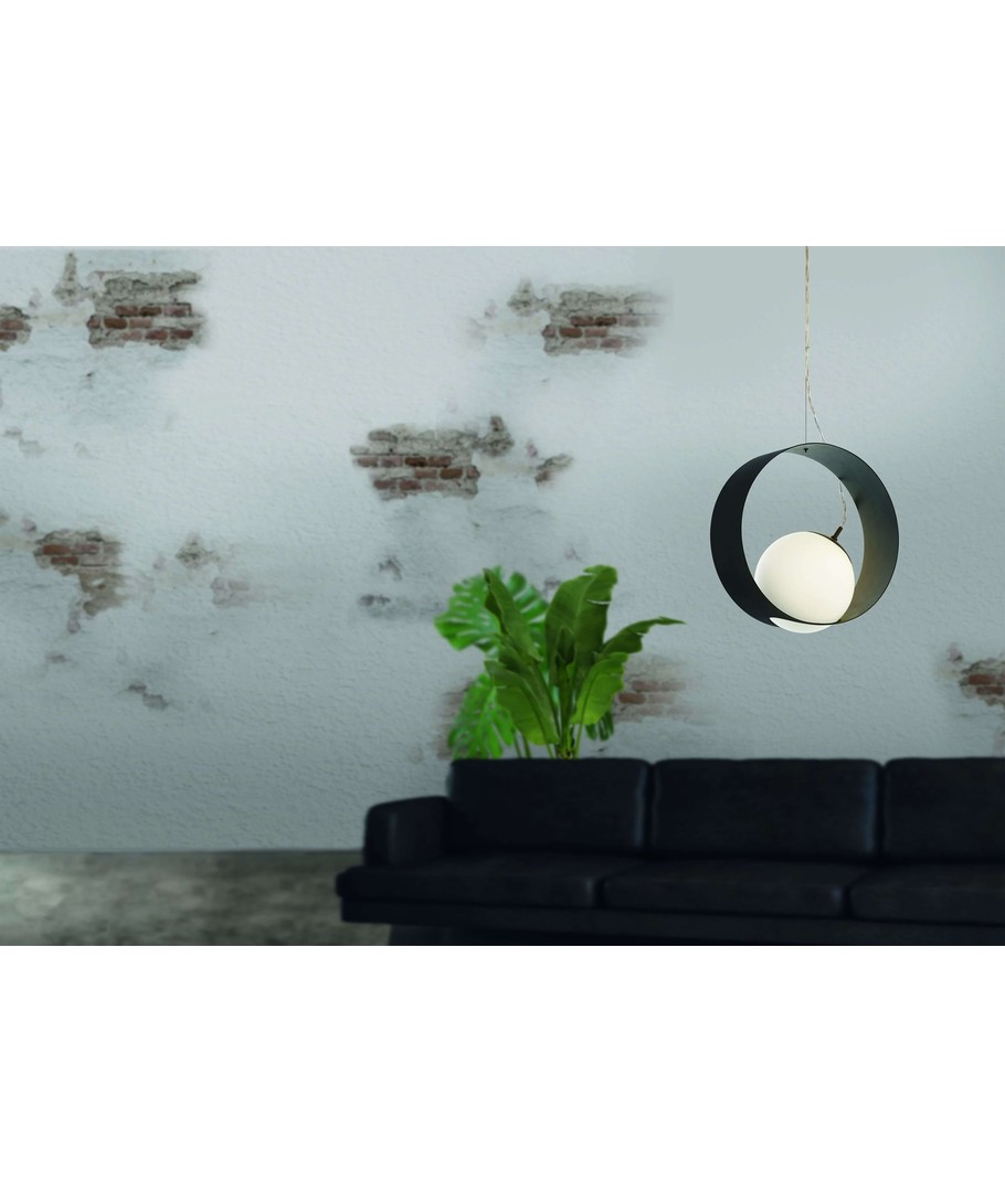Den store E27 skrue fatning er omgivet af opal glas, så lampens lys diffuseres blidt rundt i rummet.