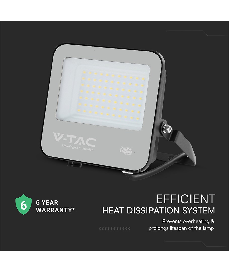 Denne projektør anvender Cree LED chip, kendt for sin fremragende lysstyrke og energieffektivitet, der sikrer en lyslevetid på op til 30.000 timer. Kombinationen af en professionel og driftssikker driver og optimal køling betyder, at du kan forvente varig ydelse fra dette produkt.