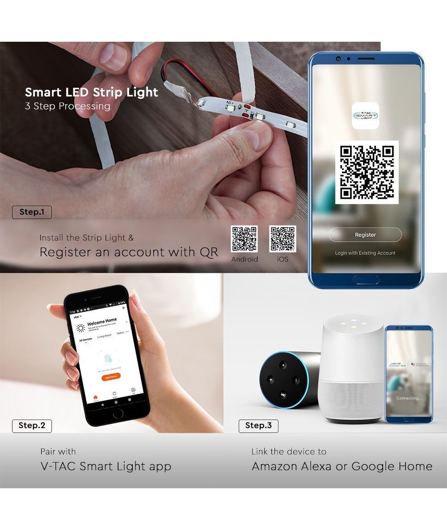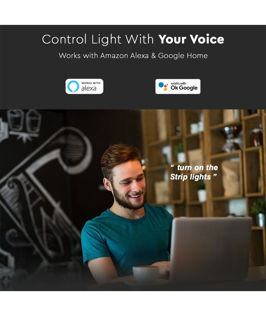 Vælg V-Tac LED strips for at opnå en harmonisk balance mellem stil, funktionalitet og holdbarhed og giv dit rum den transformerende lysoplevelse, det fortjener.