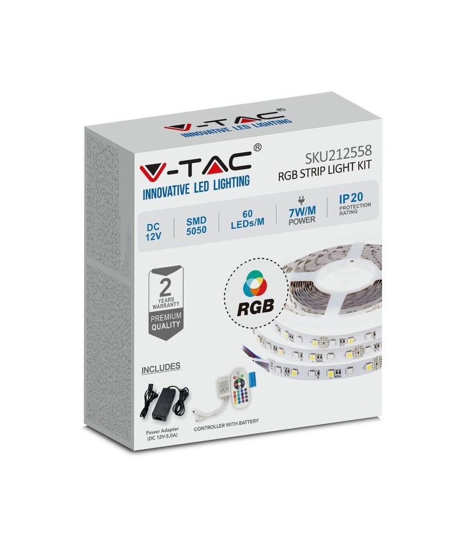 Forvandel dit rum med det alsidige og energieffektive V-Tac 7W/m RGB LED strip sæt. Dette innovative lysbånd tilbyder en unik måde at bringe farver og lyskomfort ind i dit hjem eller kontor.