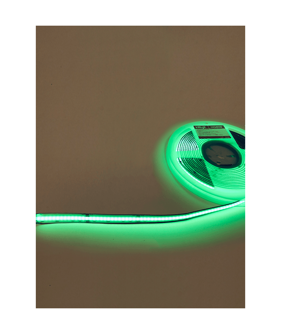 Oplev en verden af ubegrænsede farvemuligheder med HiluX RGBW COB LED Strip, som tilbyder en unik kombination af farverige og hvid lysindstillinger. Vælg mellem farverne for at skabe den perfekte stemning til enhver lejlighed. Denne strip leveres med RGB+3000K lysfarver.