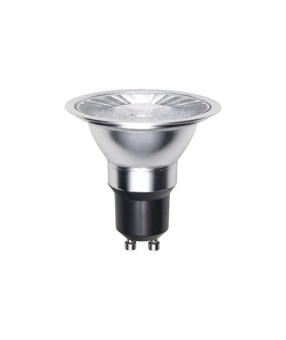 GU10 ES63 8W dæmpbar LED pære - effektiv belysning med klart glas og varm hvidt lys.- Lysstyrke: Udsender 510 lumen, hvilket giver et kraftigt, varmt hvidt lys ved 2700K.