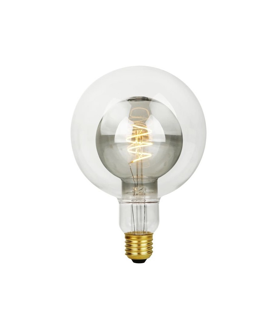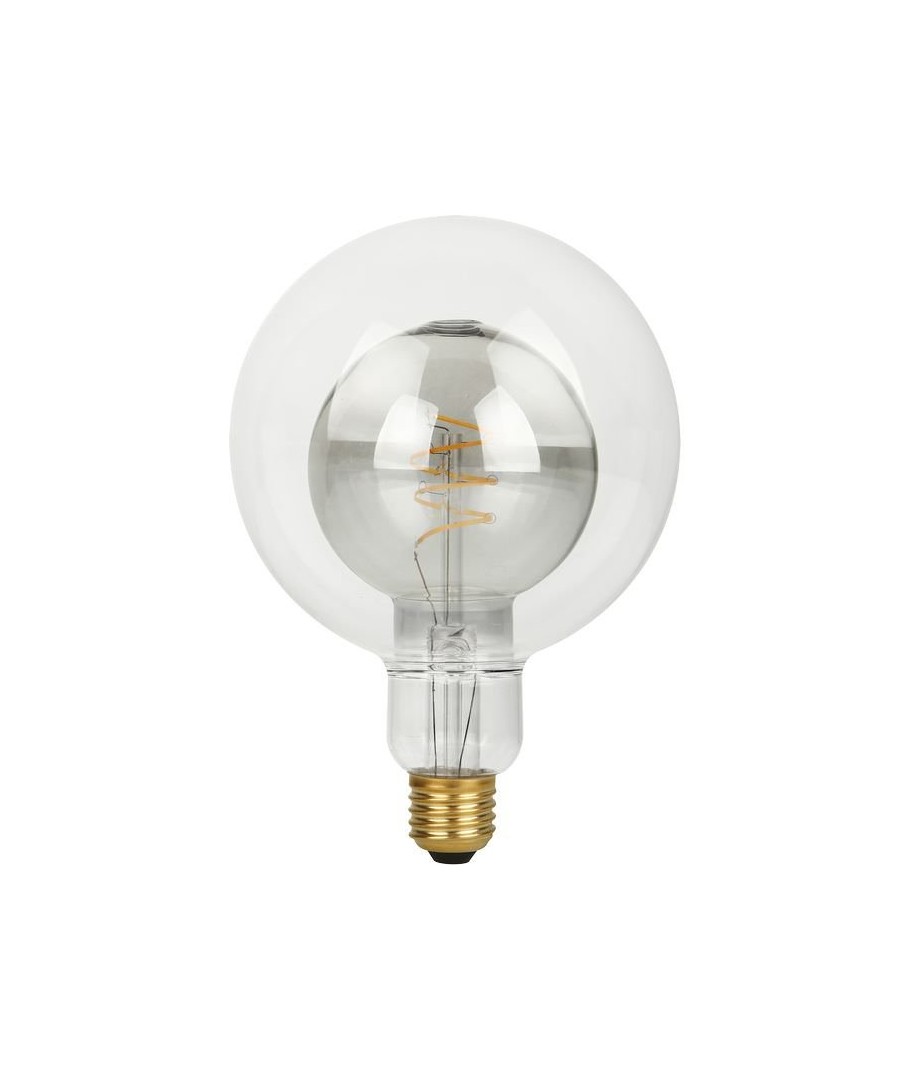 E27 5,5W LED Filament Double Globe G125 er en elegant og energieffektiv lyskilde med røgfarvet glas, der passer perfekt til dekorative formål.