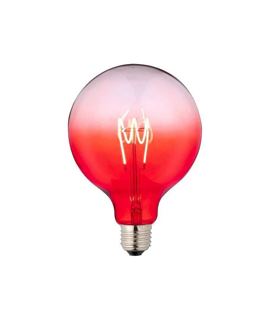 E27 4W dæmpbar LED pære - G125, rød, Flex Filament, 140lm