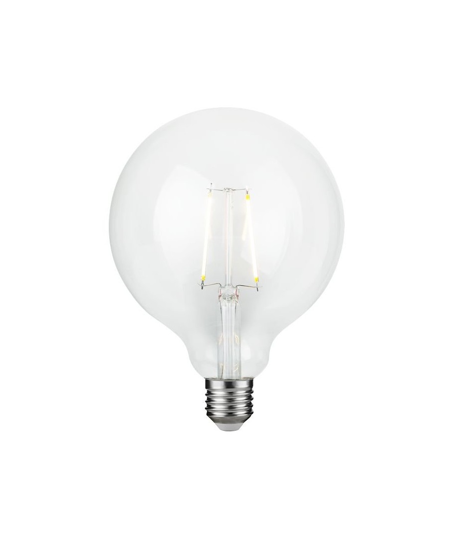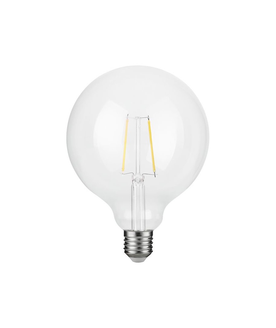E27 2,5W dæmpbar LED filament pære G125 Globe tilbyder energieffektiv og stilig belysning.- Lysstyrke: 250 lumen, hvilket sikrer en blød og behagelig belysning.