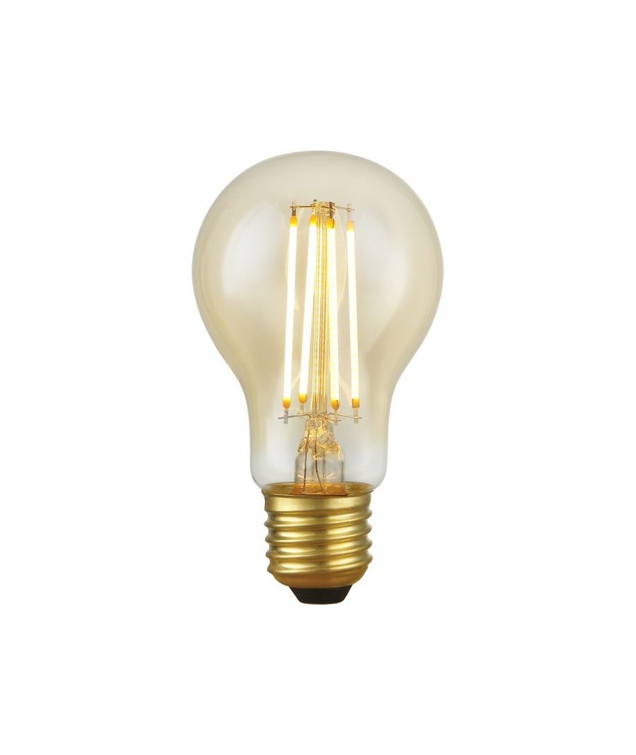 Ny E27 4,7W dæmpbar LED pære - Filament, A60, 470lm, 2200K, guld glas Udvid
