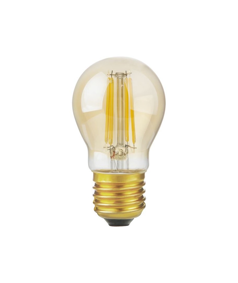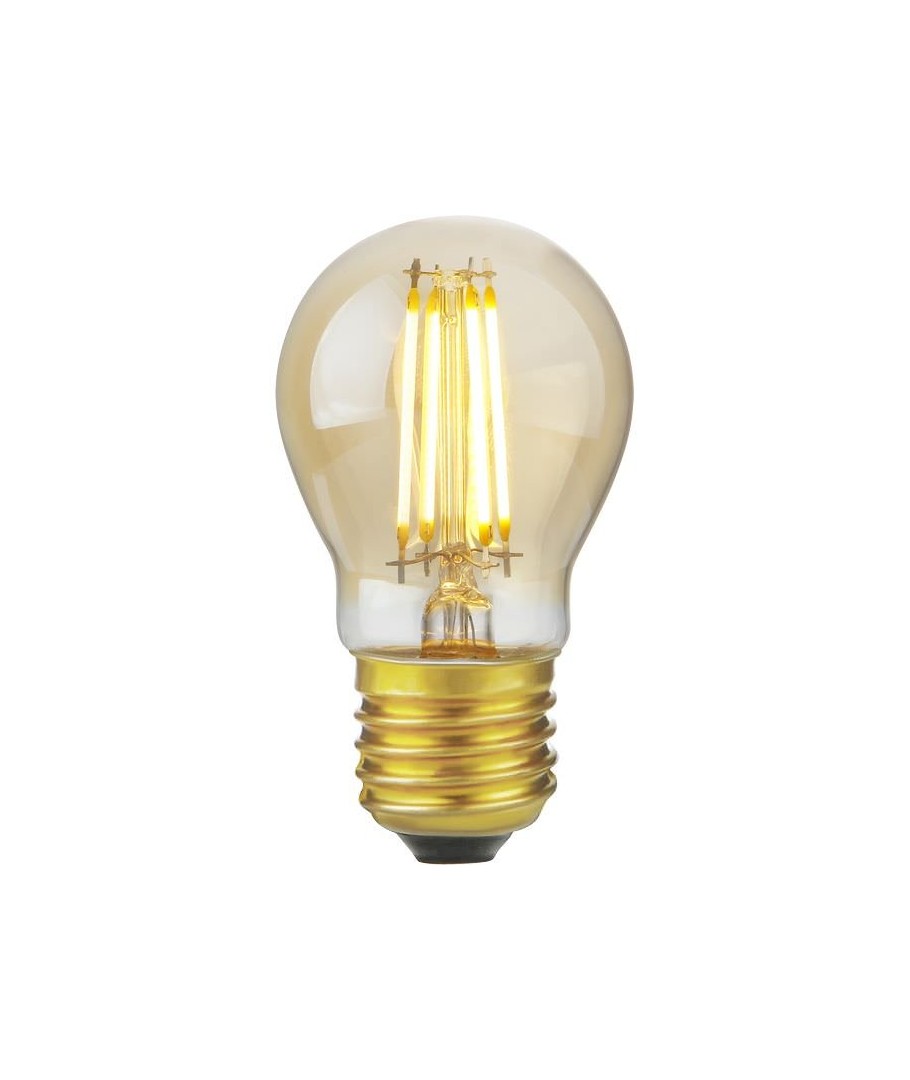 E27 4,7W dæmpbar LED kronepære kombinerer effektivitet med et unikt design i gyldent glas, ideel til hyggelig belysning.