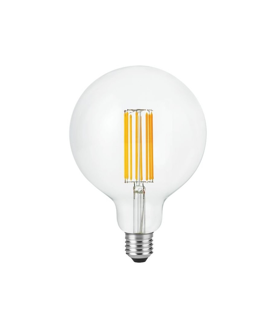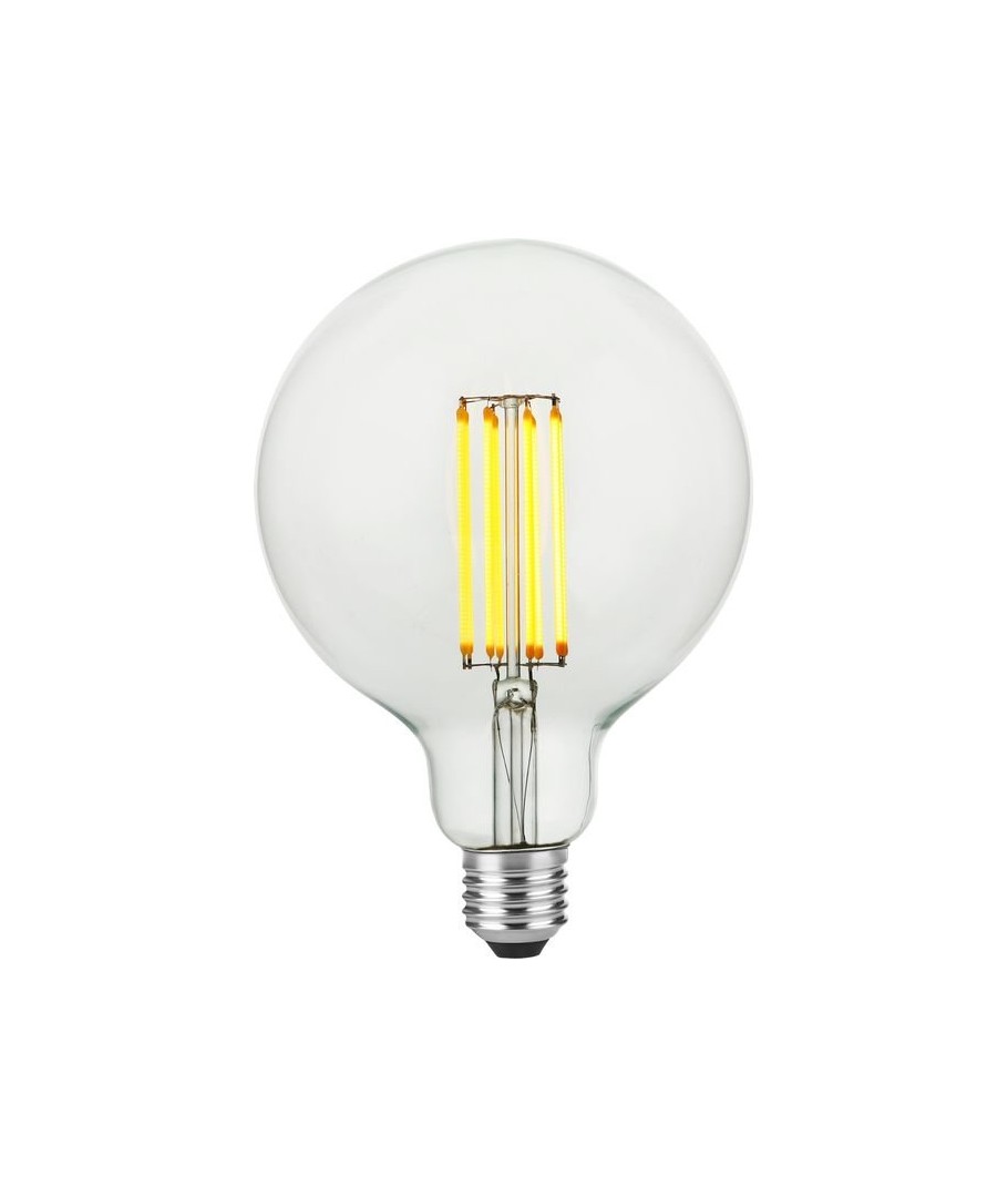 E27 7W dæmpbar LED globepære - G125, filament, 2200K, 600lm med klart glas giver en varm belysning.- Lysstyrke: 600 lumen, der sikrer en stærk og klar belysning.