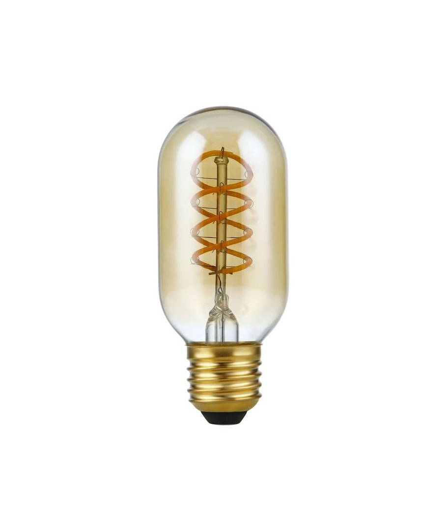 E27 5W dæmpbar LED pære med filament flex og guld glas, giver en hyggelig og varm belysning.- Fatning: E27, der passer til de fleste traditionelle lamper.