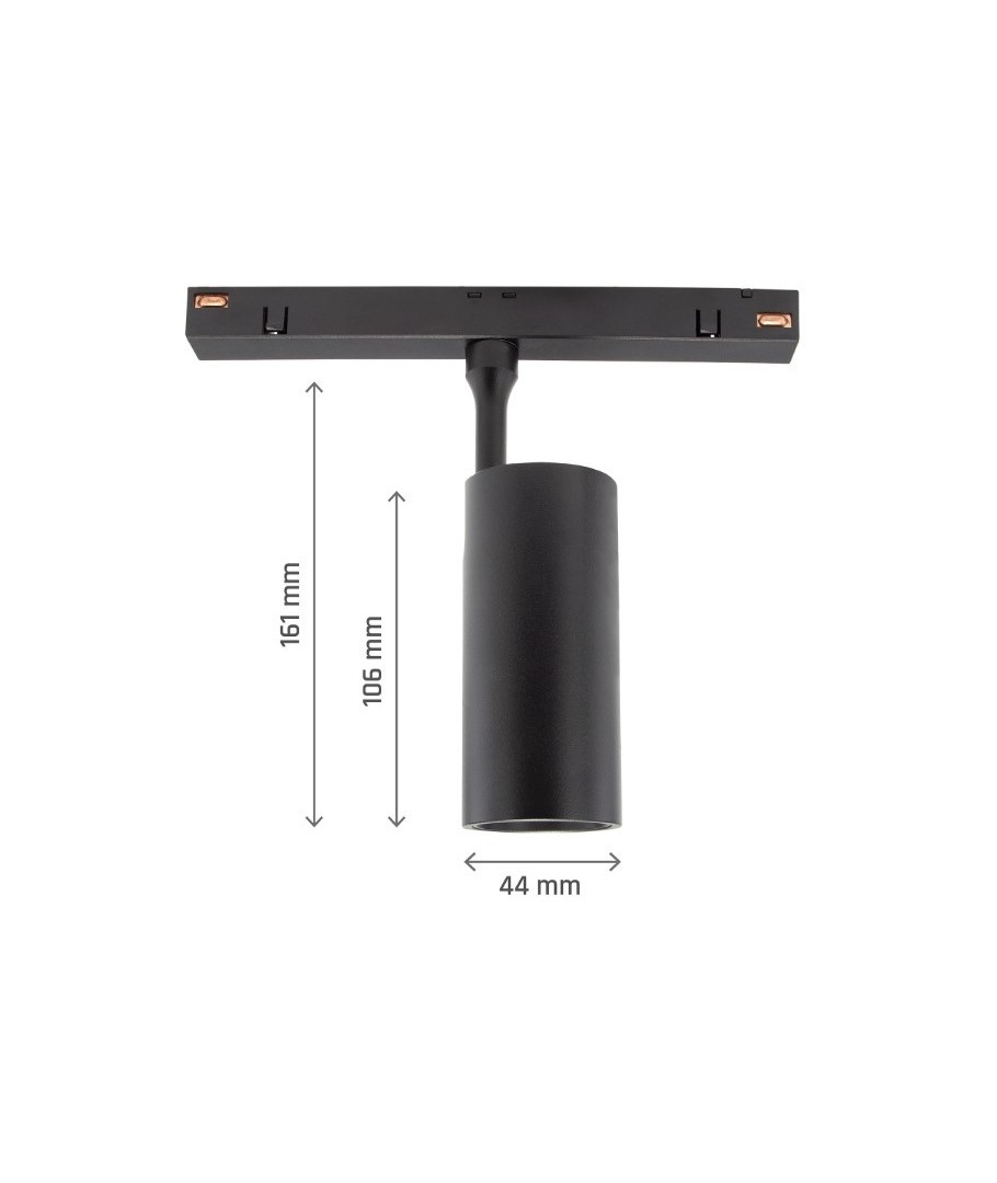 Med dimensioner på 178 x Ø44 mm giver skinnespotten en slank og diskret profil, mens den integrerede lyskilde sikrer en nem installation uden behov for yderligere justeringer.