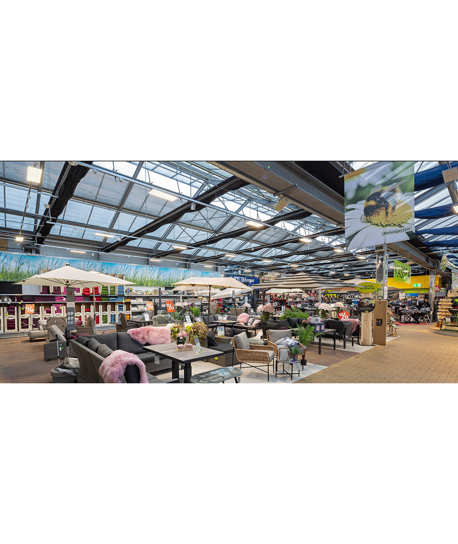 spredning på 90 grader, der sikrer en jævn fordeling af lyset i hele butikken.