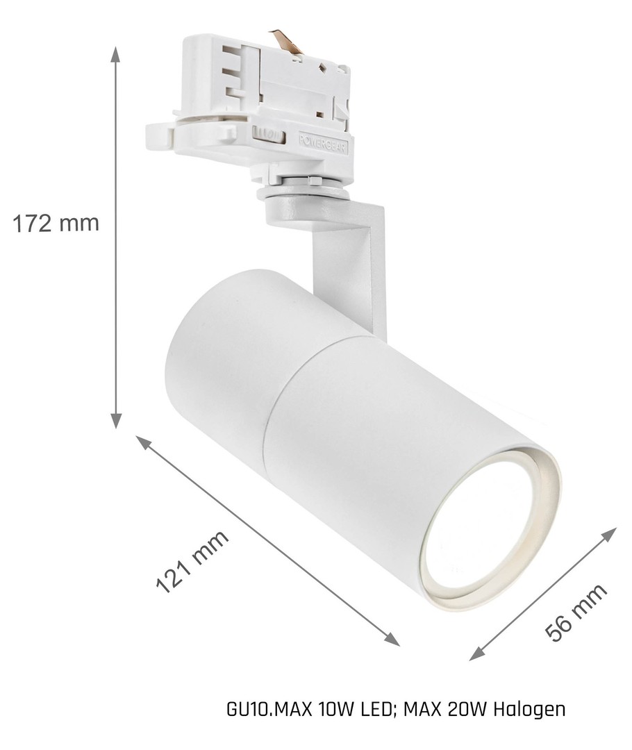 Dette elegante hvide skinnespot med GU10 fatning giver dig mulighed for selv at vælge hvilket lys du ønsker. Du kan vælge mellem de mange forskellige GU10 spots og sætte i lampen.