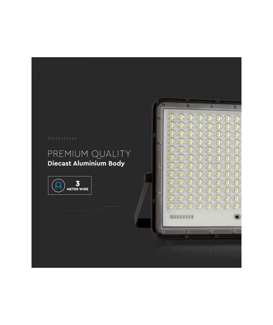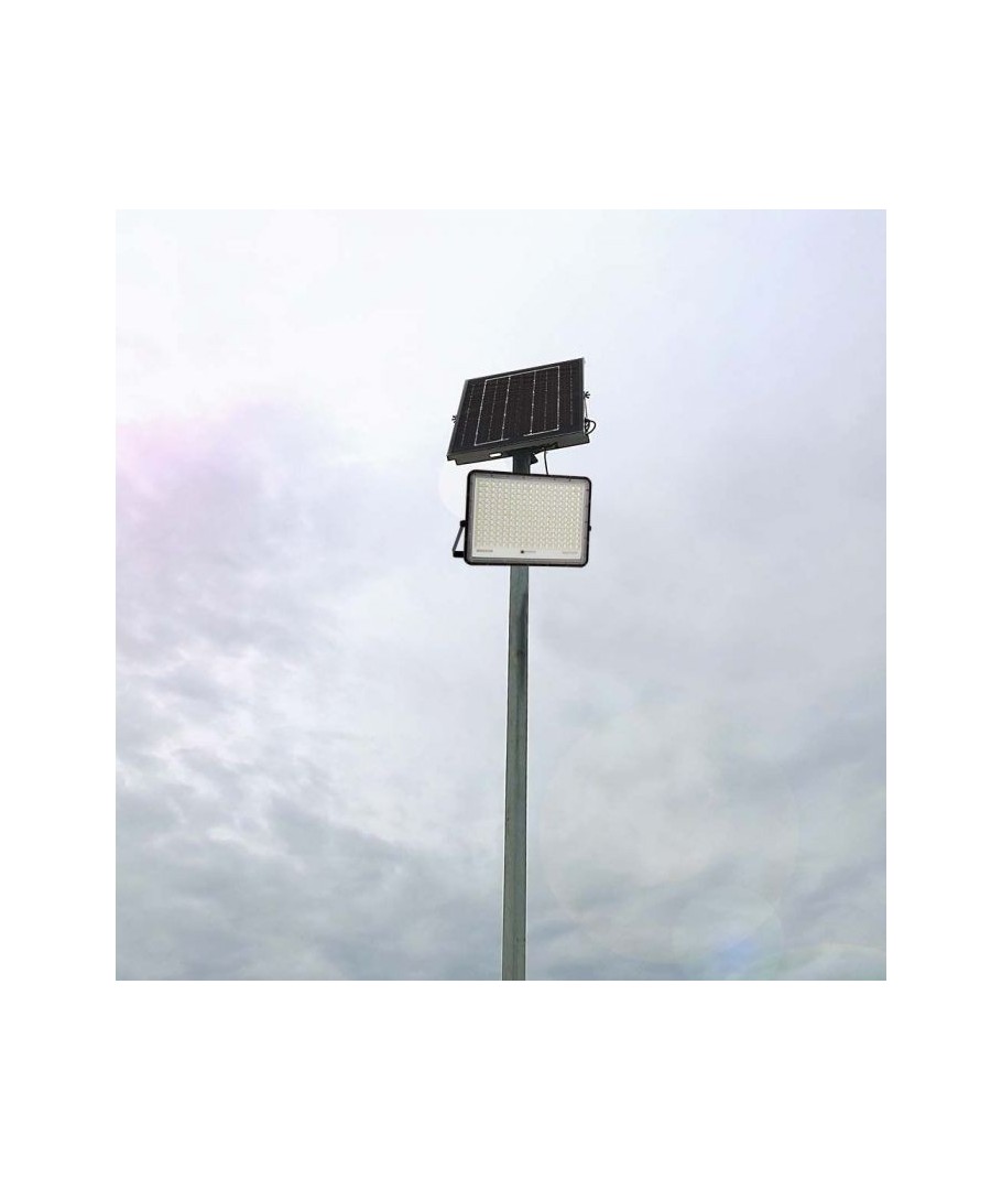 V-Tac 30W LED Solcelle projektør - Sort, en praktisk og energieffektiv løsning til udendørs belysning. Denne projektør inkluderer en solcelle og fjernbetjening og er designet til at modstå alle vejrforhold med sin IP65 vurdering. Den har også en praktisk timerfunktion, der giver dig mulighed for at indstille den til at slukke automatisk efter en bestemt periode. Med en fuld opladningstid på kun 4-6 timer kan denne projektør levere 12 timers lys. Den leveres også med en 3 meter lang ledning, der giver dig fleksibilitet til at placere den, hvor du har brug for den.