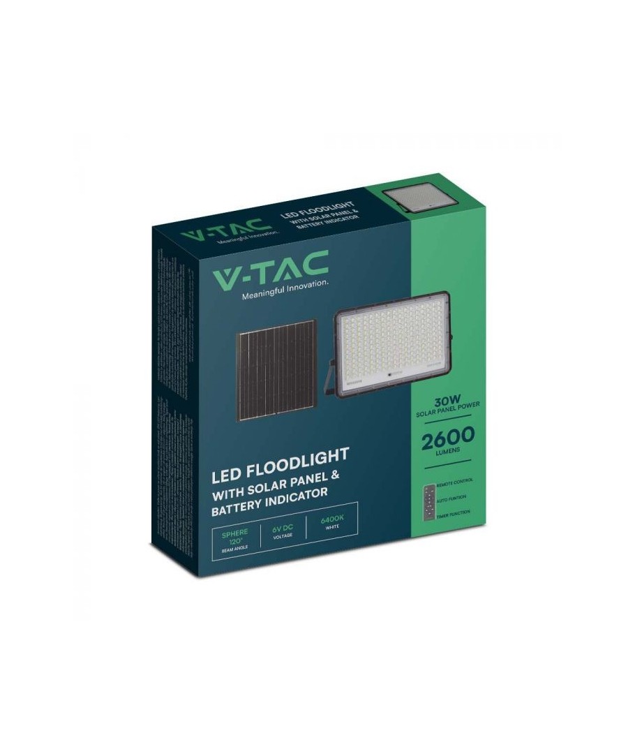 Takket være dets integrerede 30W effekt er V-Tac Solcelle Projektør en pålidelig og energieffektiv løsning til udendørs belysning. Med en imponerende lysstyrke på 2600 lumens og en bred spredning på 120 grader garanterer denne projektør en jævn lysspredning, der oplyser et stort område uden besvær.