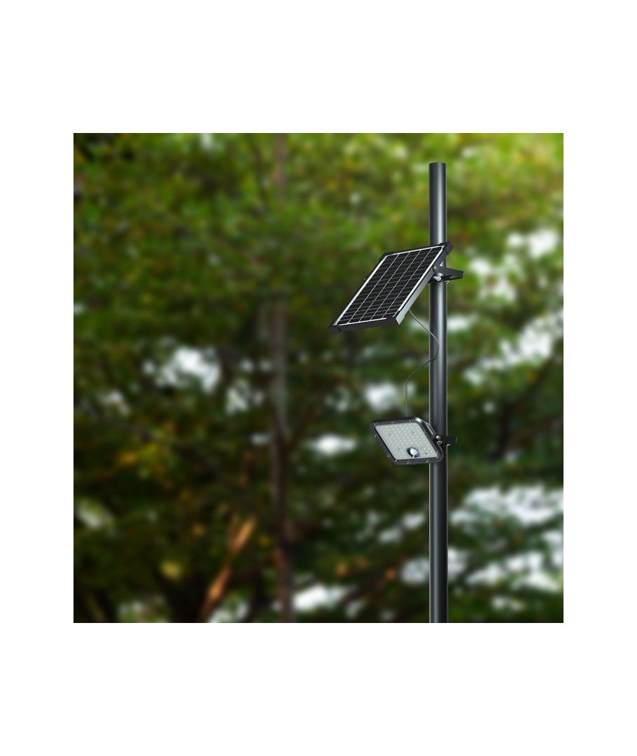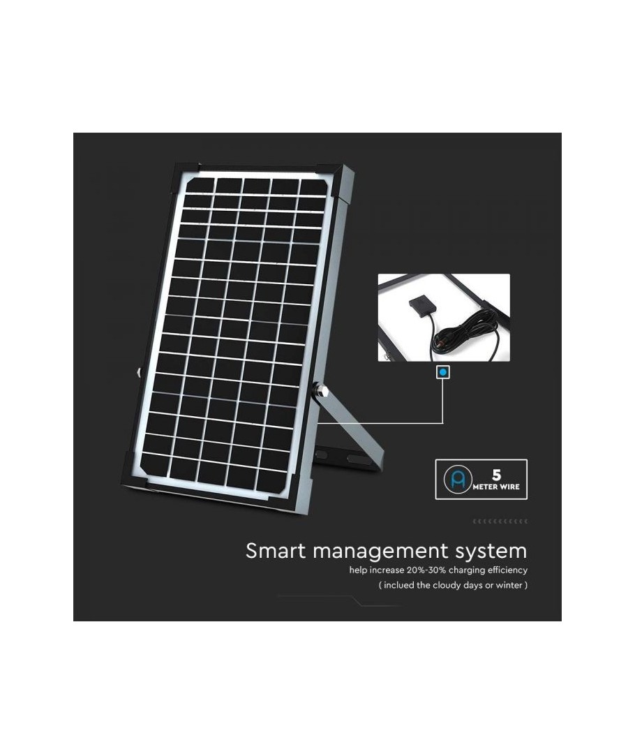 V-Tac 30W LED Solcelle projektør - Sort, en praktisk og energieffektiv løsning til udendørs belysning. Denne projektør inkluderer en solcelle og fjernbetjening og er designet til at modstå alle vejrforhold med sin IP65 vurdering. Den har også en praktisk timerfunktion, der giver dig mulighed for at indstille den til at slukke automatisk efter en bestemt periode. Med en fuld opladningstid på kun 4-6 timer kan denne projektør levere 60 timers lys. Den leveres også med ledning, der giver dig fleksibilitet til at placere den, hvor du har brug for den.