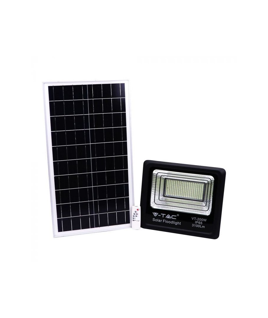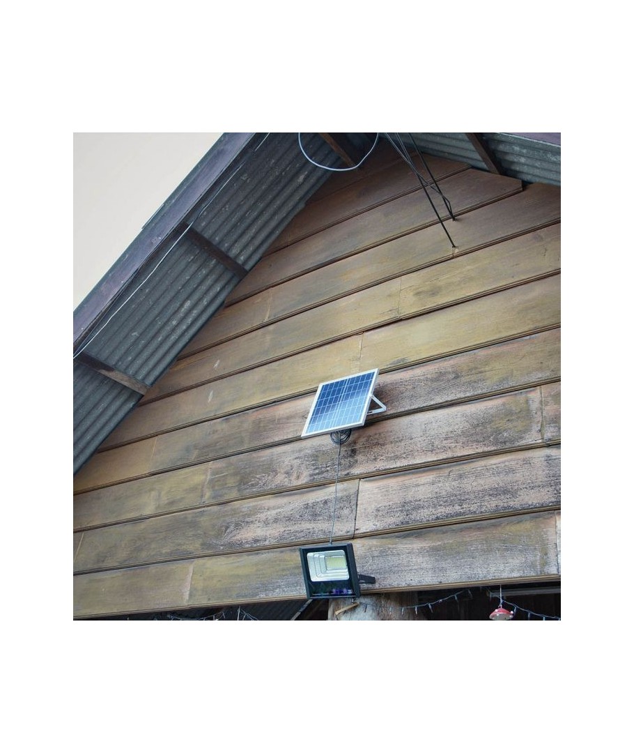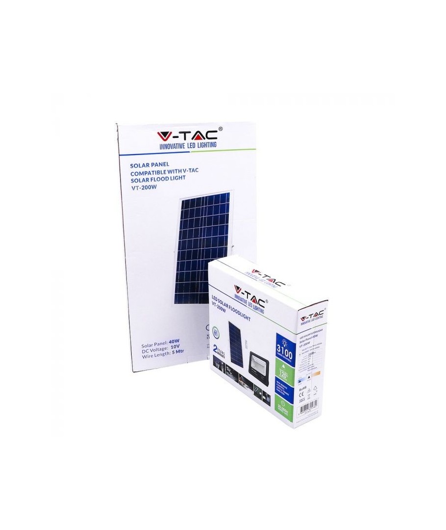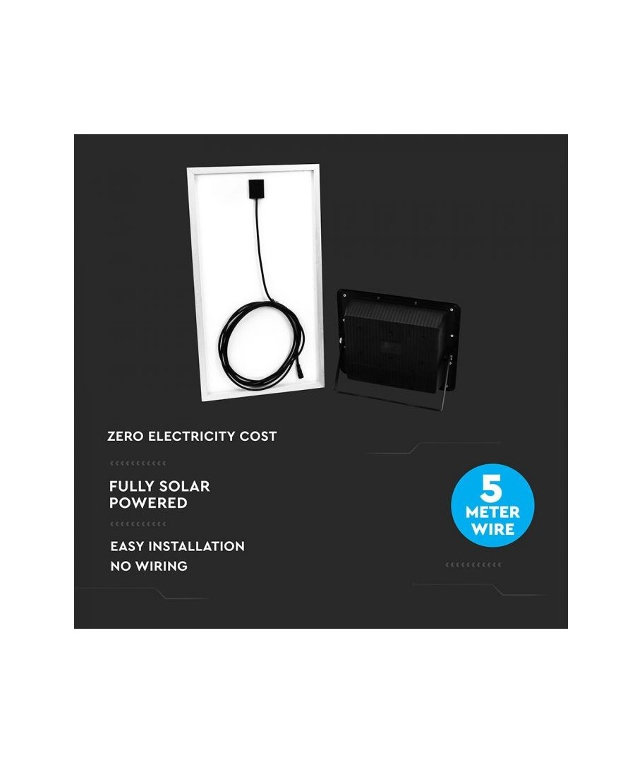 V-Tac 40W LED Solcelle projektør - Sort, en praktisk og energieffektiv løsning til udendørs belysning. Denne projektør inkluderer en solcelle og fjernbetjening og er designet til at modstå alle vejrforhold med sin IP65 vurdering. Den har også en praktisk timerfunktion, der giver dig mulighed for at indstille den til at slukke automatisk efter en bestemt periode. Med en fuld opladningstid på kun 4 timer kan denne projektør levere 8 timers lys. Den leveres også med 5 meter ledning, der giver dig fleksibilitet til at placere den, hvor du har brug for den.