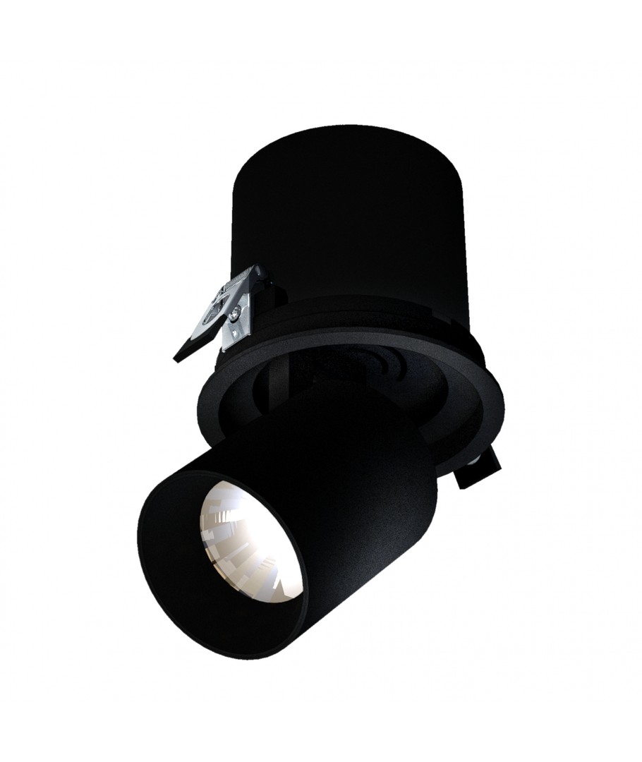 IN OUT - Model L er et fleksibelt nedsænket downlight i et stilfuldt sort design, der tilbyder justerbar forlængelse og retning.