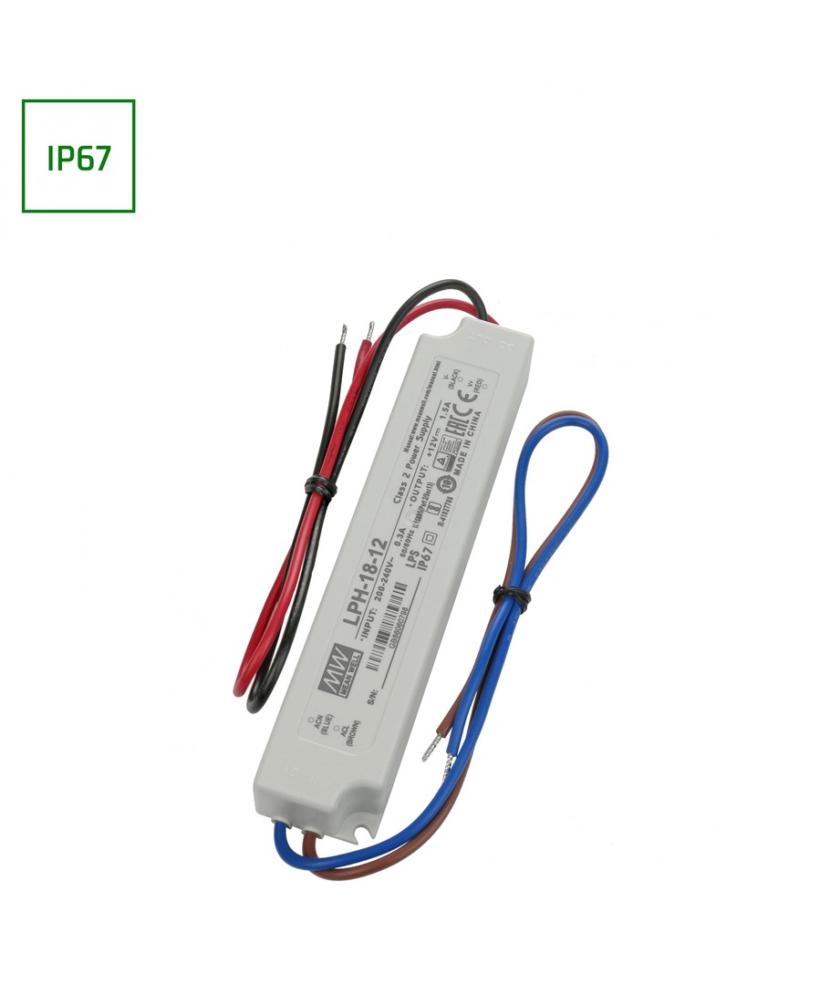 Designet til at modstå udfordrende miljøer, er denne strømforsyning IP67-klassificeret, hvilket gør den vandtæt. Den kan modstå støv og korte perioder af nedsænkning i vand, men bør ikke placeres under vand i længere tid.