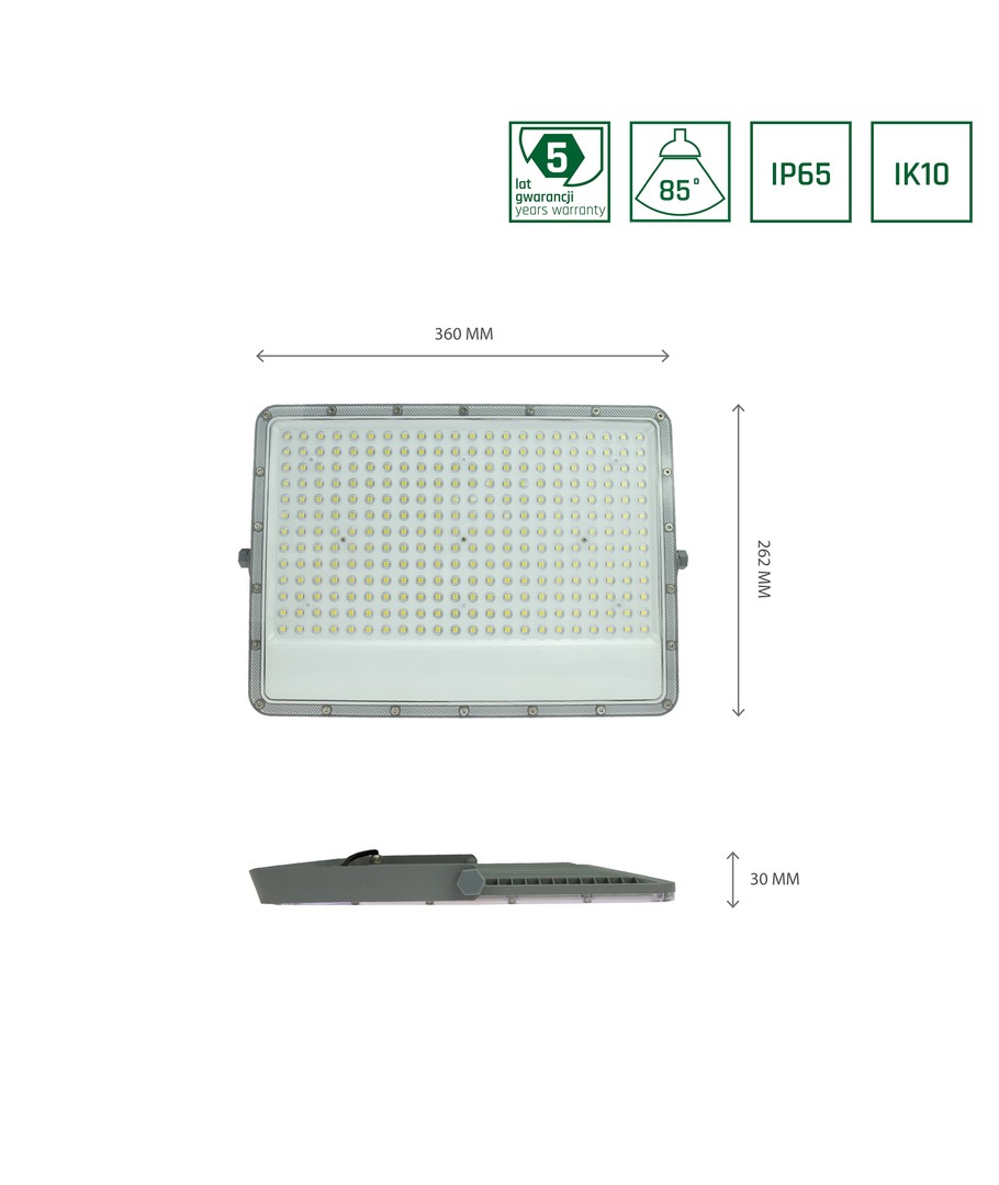 Produktet leveres med en 5 års producentgaranti, der sikrer tryghed og kvalitet i enhver installation. Denne projektør er den ideelle løsning for dem, der søger en pålidelig og kraftig belysningsmulighed til udendørs brug.