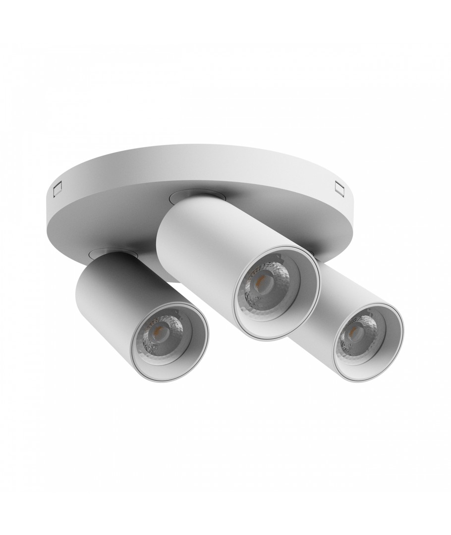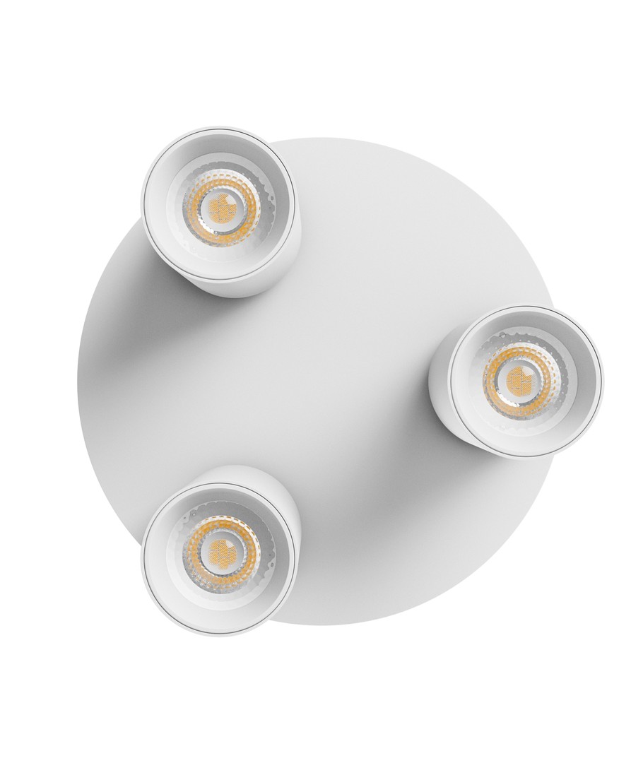 Den runde loftlampe med 3 spots er en elegant og funktionel løsning til at belyse indendørs rum. Designet i hvid aluminium, passer den perfekt til moderne indretninger.