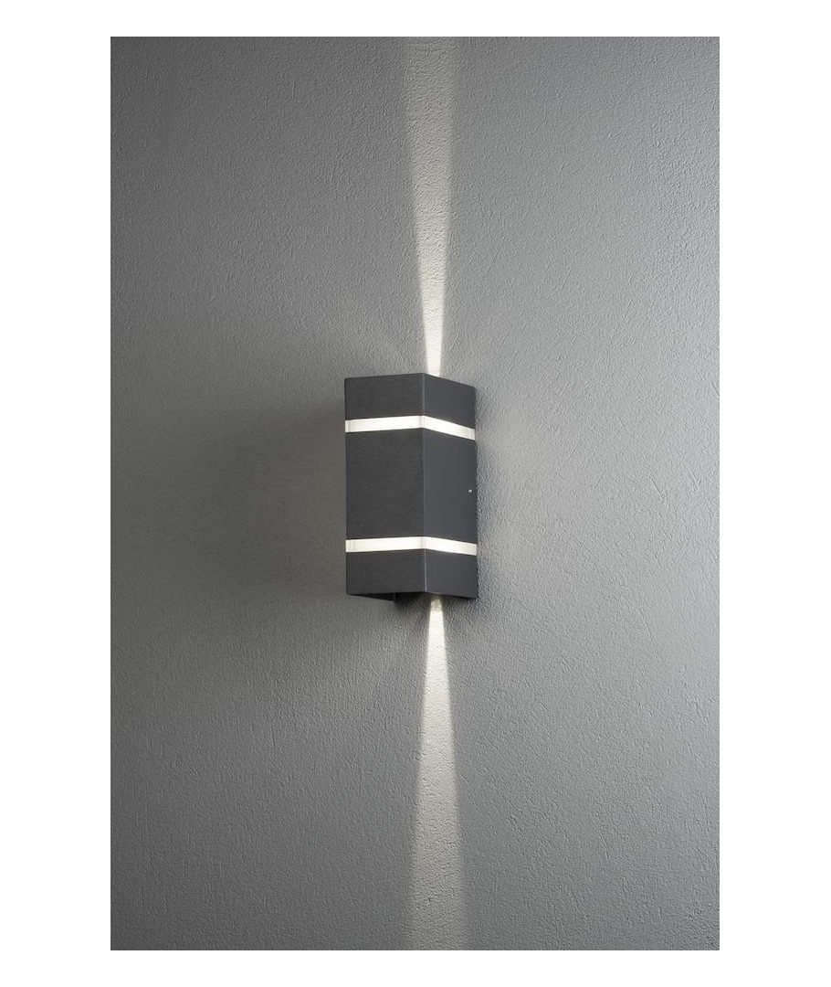 Lampen har indbygget LED lyskilde på 2x3W, der giver et varmt og behageligt lys og er udført i Antracit grå aluminium.