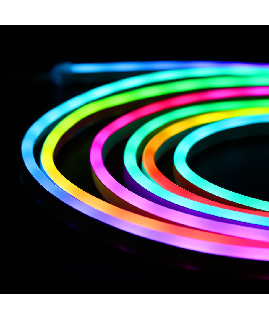 Oplev en verden af farver med vores 3W/m RGBIC 7x15 Neon Flex strip - en 250cm RGBIC neon flex, der bringer lys og liv til ethvert rum med sin dynamiske farvespil og fleksible design.