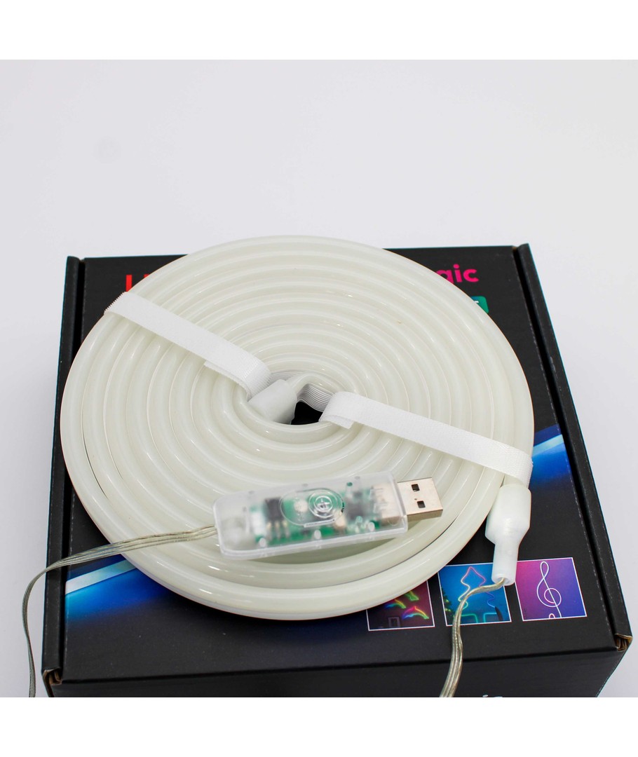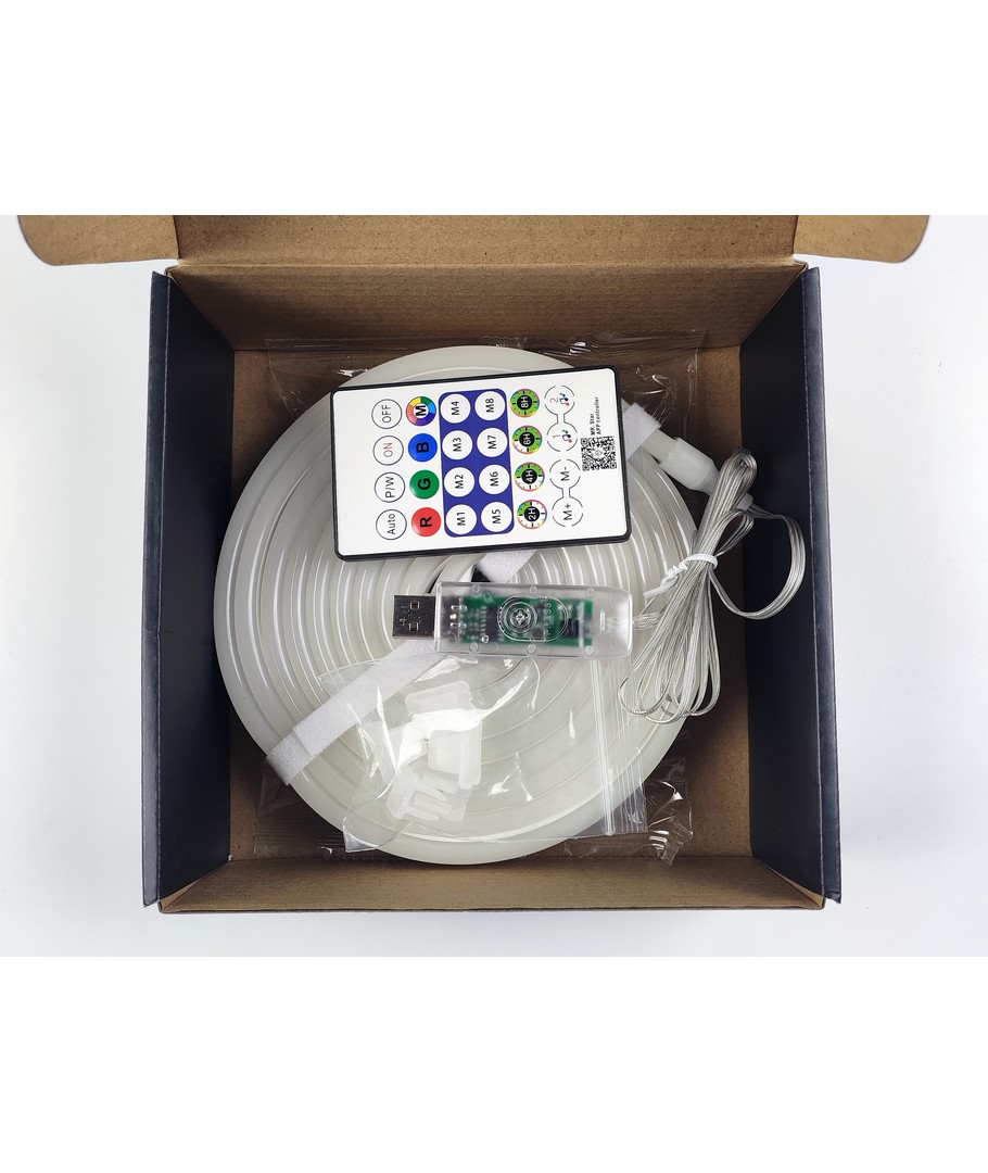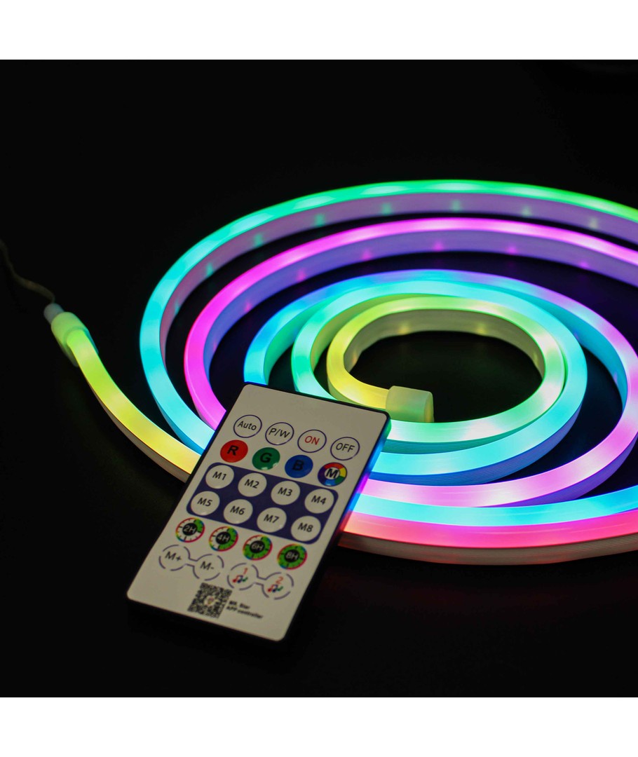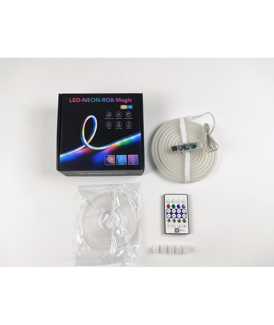 - 5m RGBIC Neon Flex komplet sæt - 8x16 neonflex, Bluetooth app, fjernbetjening, USB