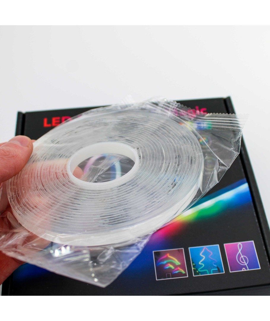 Komplet med 5 meter nanogel monteringstape + ekstra klips.