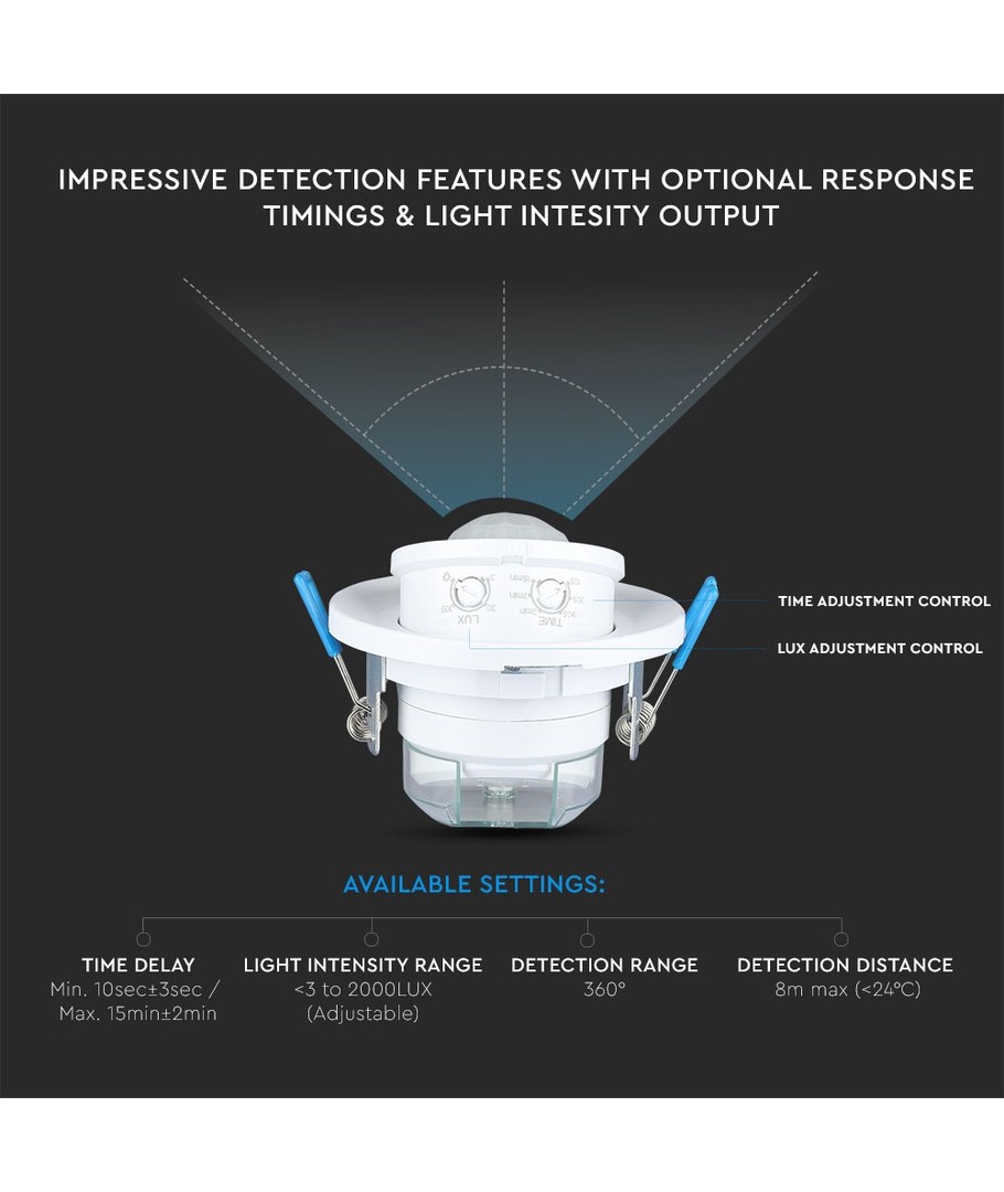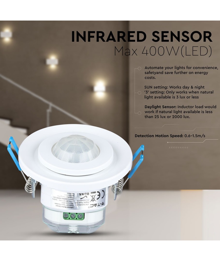 | Yderligere bemærkninger | Sensor type: Infrared. Sensor angle: 360. Sensor distance: Max 8m( |